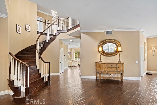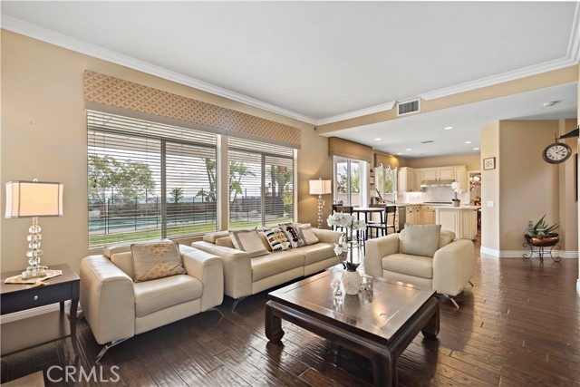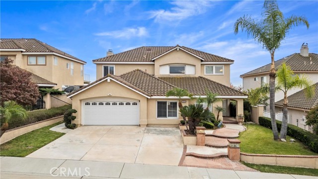 Perched in the desirable Vantage Pointe community of Rowland Heights, this expansive view home offers 6 bedrooms, 5 bathrooms and approx. 3,551 sq.ft. of living space on an oversized ~16,500+ sq.ft. lot. Thoughtfully updated over the years, the interior features double-door entry, high ceilings, crown molding, recessed lighting, plantation shutters and beautiful wood flooring that flows through the main living areas. The flexible floor plan includes two bedrooms and two bathrooms on the main level, including a generous ensuite that can function as a guest or multi-generational suite. The remodeled kitchen opens to the family room and showcases quartz countertops, resurfaced cabinetry, stainless steel appliances and a built-in KitchenAid refrigerator. Upstairs you’ll find four additional bedrooms and three bathrooms, highlighted by a spacious primary suite with double-door entry, upgraded spa-style bath, and a private balcony capturing sweeping city-lights views. The resort-style backyard is ideal for entertaining, offering a sparkling pool and spa, built-in BBQ, covered patio and lush palms. On clear evenings, you can relax in the yard or on the primary balcony and watch the Disneyland® fireworks light up the Orange County skyline. Energy-conscious features such as solar panels and an electric-car charger add everyday convenience, while the location puts you close to parks, markets, shopping, the Rowland Heights Community Center, and easy access to the 60 and 57 freeways. Solar panel is leased.