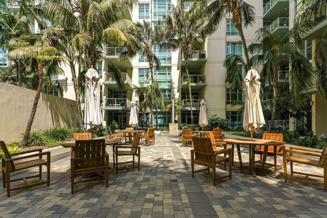 Experience serene treetop views from this west-facing, end-unit residence at Discovery, complete with a private balcony overlooking the peaceful side of the community. With custom paint tones throughout, the upgraded chef’s kitchen is a true centerpiece, showcasing new Calacatta quartz countertops, top of the line GE Profile stainless appliances, painted timeless shaker cabinetry and a deep, single-basin stainless sink combines sleek style with practical ease for cleanup, and recessed lighting for a sleek, modern look. The open-concept living area is highlighted by luxury vinyl plank flooring, expansive windows that flood the space with natural light, a charming window bench seat with built-in storage, track lighting, remote shades, and a cozy fireplace. The spacious primary suite is thoughtfully designed with custom California Closets, a built-in dresser, and remote shades for effortless privacy. The beautifully remodeled guest bath features a walk-in shower and designer finishes. Additional conveniences include one secure parking space near the elevator and a dedicated storage unit. All this in charming, tree-lined Cortez Hill—Downtown San Diego’s hidden gem, celebrated for its tranquil ambiance and sophisticated urban lifestyle. Perched atop Cortez Hill, Discovery offers resort-style living in one of Downtown San Diego’s most charming and established neighborhoods. Residents enjoy secure underground parking, 24-hour concierge service, an elegant lobby, and thoughtfully designed shared spaces including the lush 2nd-floor Fern Grotto Garden and a stylish social lounge. The business center is equipped with commercial-grade office tools, and the 10th-floor rooftop deck features a heated lap pool, cabanas, spa, BBQ grills, and panoramic city views. A top-tier fitness center includes a sauna and steam room for full wellness access. Just steps away are local favorites like Tweet Street Park, Hob Coffee, and Soleluna Café, with Little Italy and Balboa Park within walking distance. Plus, enjoy quick freeway access to I-5 and Hwy 163 from this peaceful urban retreat.