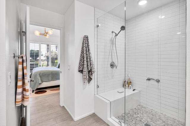 This home has been opened up to create a one of a kind, architecturally redesigned, modern masterpiece. Fully furnished including art. Ready to move right in! Expansive golf course and mountain views from the 11th hole of the Private Palmer golf course. Light and bright with soaring ceilings, wet bar with wine cooler, all new cabinets, stone countertops and beautiful tile plank floors.Large front patio off the kitchen features BBQ area and sensational mountain views. Back terrace is newly fenced and sits right on the golf course.Two primary suites with spa like elegance. Just steps away from a community pool. Air conditioned garage with lots of storage and epoxy flooring. Turn Key!!HOA includes cable, Internet roof, exterior paint, landscaping and earthquake insurance. One of the finest golf communities in the desert. Enjoy the luxury of PGA West. Your perfect oasis.. It's a MUST SEE.