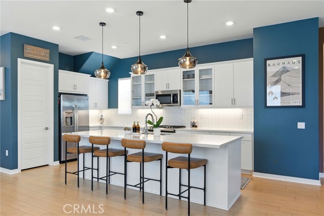 Model perfect DREAM home with SPACE (4 bedrooms PLUS Bonus Room PLUS separate office! Could utilize as 6 bedrooms!) Experience the ultimate lifestyle in the heart of the vibrant Valencia FivePoint community, where every day feels like a getaway! With expansive green belts, scenic walking paths, and delightful community pools, your outdoor adventures await just steps from your door. Enjoy fresh produce in the organic garden, participate in monthly community events, and stock up on local goodies at the weekly farmers market. Your four-legged friends will thrive in the nearby dog park, while active residents can challenge themselves on the pump track for cyclists and skateboarders. Step inside this stunning, upgraded residence that lives like a single-family home, featuring OWNED solar, so you can enjoy energy savings while you soak in the lively neighborhood charm. Built in 2023 by Tri Pointe Homes, this contemporary sanctuary boasts 4 bedrooms, 3.5 bathrooms, a bonus room, and an office, blending smart technology with sustainable features for an elevated lifestyle. As you enter, you’re met with modern light fixtures and luxurious vinyl plank flooring throughout the open-concept layout. The chef-inspired kitchen is a dream, complete with stainless steel appliances, a spacious center island, a walk-in pantry, elegant cabinetry, and a beautifully upgraded modern tile backsplash. Outdoors, you’ll find various living areas to unwind. The third-floor deck, attached to a bonus room and a full bedroom and bath, offers a perfect retreat. In addition, enjoy the versatile second-floor deck, a side yard with artificial turf, and a charming front courtyard that welcomes you home. With a two-car attached garage equipped with an EV charging port and an energy-efficient tankless water heater, you’ll have the convenience you need. Plus, modern features of a Ring doorbell, smart thermostat, keyless entry, and energy-efficient dual-paned windows seamlessly enhance your lifestyle. Living in FivePoint isn’t just about a home; it’s about embracing a community that enriches your life every day! This home is TURNKEY and model perfect! Close to freeway, high rated schools, shopping and restaurants. The HOA fee INCLUDES required exterior fire insurance. VA/FHA approved. OWNED Solar!