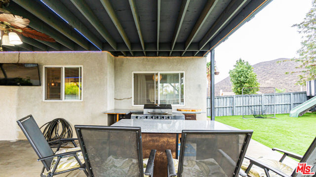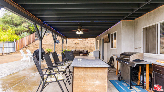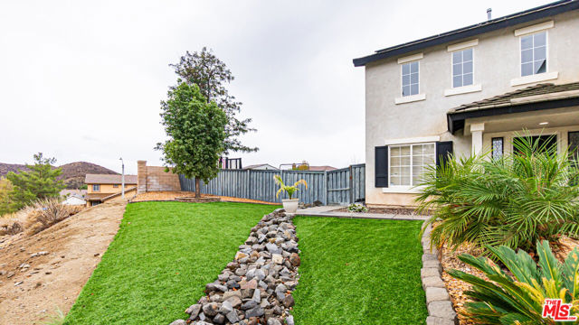 Beautifully Upgraded 5-Bedroom Home On Huge Corner Lot in Lake Elsinore! Sitting on just over 19,000 square feet, this 2-Story Stunner has undergone extensive remodeling & has designer finishes throughout. Modern open-concept layout. Formal living room area w/ soaring dual-height ceilings. Full bar area w/ boxed-in ceiling. Family room w/ custom wall inlays & built-ins. Stunning Chef's kitchen w/ custom shaker cabinetry, quartz countertops, subway tile backsplash, center island w/ pendant lighting, stainless-steel appliances, wine cooler, & walk-in pantry. Adjacent dining area w/ stone fireplace. Spacious 2nd floor bedrooms w/ vaulted ceilings. Master Bedroom Suite w/ Huge wrap-around balcony (views of the Lake & Stadium), dual vanities, soaking tub, & standing shower. Huge private backyard w/ covered patio, grassy area, playhouse, & shed - perfect for entertaining! Laundry room w/ storage. Sunrun solar system. 3-car garage w/ storage & plenty of driveway parking (3rd garage space has drive-thru door into backyard). Full front & rear irrigation systems. Just minutes to the best shopping, dining, & entertainment the area has to offer, as well as excellent local schools, parks, hiking trails, & Lake Elsinore itself. A unique opportunity that is not to be missed - turnkey!