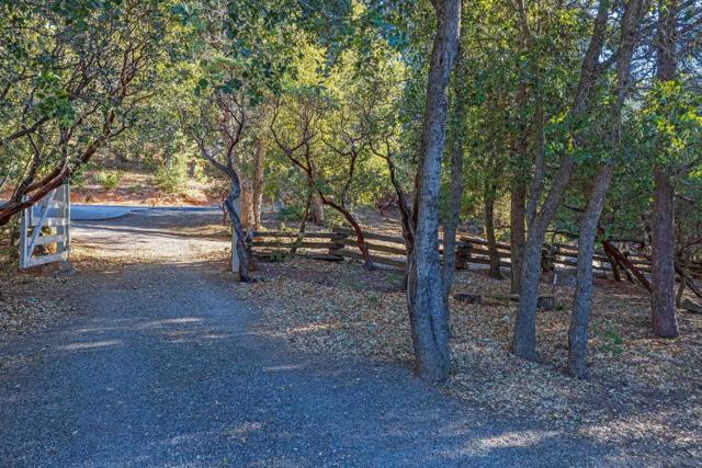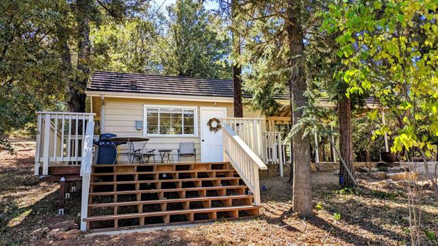 AMAZING VIEWS & WALKABLE LOT! Nestled at the top of a scenic hill in Julian's highly sought-after Pine Hills neighborhood, this captivating 1949 home exudes timeless mountain charm and privacy. With only three part-time owners, this remarkable property offers 1.16 acres of serene natural beauty, with old oaks, towering pines, and manzanita. A highlight of the property is the detached guest studio with a deck, and the flagstone courtyard, with its natural stone-lined pathways, providing a tranquil escape for relaxation and outdoor enjoyment. The panoramic views of the Volcan Mountain range will take your breath away. This is an ideal setting for birdwatching and observing the local wildlife, including herds of deer, turkeys, and the occasional fox. The home is in charming original condition, reflecting the thoughtful design of its first owner—an engineer and designer. The classic vintage tile, fixtures, fireplace, and wood floors create a nostalgic allure. The exterior is crafted with hard old-grove redwood siding, known for durability and beauty. The home features zoned area heating and air conditioning mini-splits for efficient performance, two water heaters (including one for the separate studio), and a large Elvira wood-burning insert for cozy warmth on cooler days. This home blends comfort with character. The property includes an attached and detached garage, a carport, and ample parking for guests. The land is cleared and meticulously maintained, ensuring easy access and usability. With a metal-tiled roof and pest-resistant old grove redwood siding.Move in ready!