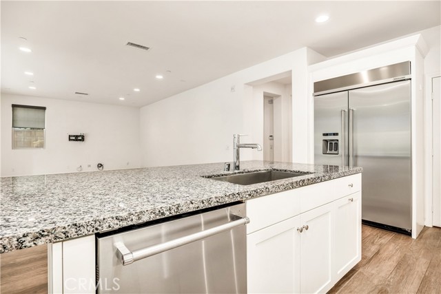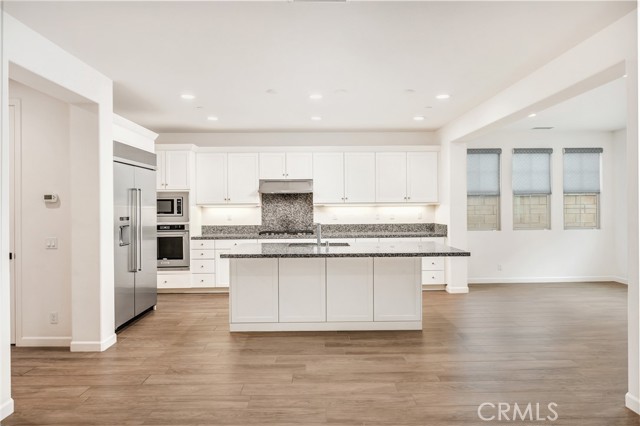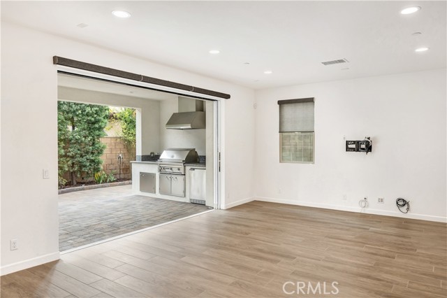 Ideally located in the highly sought-after Greenwood Community in Tustin Legacy Area. Boasting 4 bedrooms, 4.5 bathrooms, Residence 3 with outdoor kitchen. This turnkey home will greet you with the warm wide wood plank tile floors. Main level open floor plan with one bedroom downstairs. Well-appointed kitchen, complete with granite counter tops, KitchenAid stainless-steel appliances and Kohler farmers sink. Kitchen opens to the bright dining and living room area with multi-panel pocket doors to the yard. Ascending to the second level, you’ll discover three bedrooms and family room. The primary suite impresses with en-suite bathroom and dual walk-in closets, soaking tub and separate shower. Bedroom three with en-suite bathroom and fourth is spacious and bright. Second floor laundry with lots of storage. Landscaped backyard with covered outdoor room with outdoor kitchen with gas grill, hood and fridge, sink. Two car garage with electric car outlet. Notable enhancements, custom shutters and draperies, neutral paint, functional floor plan. This community has pool and spa, clubhouse, parks and BBQ area and children’s playgrounds, basketball courts. Located near to shopping, parks, and freeways.
