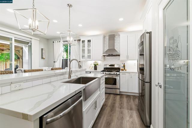 This beautiful 3 BDRM, 2.5 BA, 2-car attached garage home shows like a model with 1,552 sq ft of well-designed living space. Step inside the bright & inviting floor plan, freshly updated for modern living. The main level features a spacious living & dining rm w LV flooring perfect for large gatherings. The gorgeous kitchen is a chef's delight, boasting Quartz counter tops, custom tile back splash, newer wood cabinetry with the added touch of undermount lighting. The kitchen island has an apron style stainless sink with top-of-the-line stainless appliances including a built-in wine cooler and pantry closet providing a seamless flow to the dining area, a half bathroom and access to the spacious 2 car garage complete the main level. Upstairs, you'll find three generously sized bedrooms, including a primary suite w a private bath & walk in closet. The additional bedrooms are well-appointed and share a full bathroom. The laundry rm is located on the upper level for added convenience. Every room reflects pride of ownership & features stylish finishes including ceiling can lighting & custom light fixtures throughout. Enjoy the curb appeal and the low-maintenance exterior, a fenced backyard, tile patio w a wood Gazebo, lush lawn area with colorful plants perfect for outdoor enjoyment!