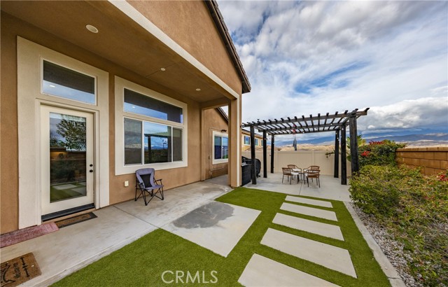 Welcome to 11474 Jacobsen Rd! This stunning 3 bedroom 3 bath home features upgrades that can cater to a young family or retirees looking to downsize.The kitchen has plenty of cupboard space, ample counter space with double ovens, a deep sink and opens up to the living room and dining room perfect for entertaining or large family gatherings. The home has beautiful oak colored luxury vinyl throughout, tall ceilings, and spacious bedrooms. The primary suite is your perfect getaway and features an ensuite bathroom with double sinks, separate tub/shower and walk-in closet and a private french door to access the backyard.You will also find the indoor laundry room with plenty of shelving and large deep sink . Has newly installed water softener and whole house fan. The backyard is tastefully landscaped with an outdoor sink and a gas connection ready for your bbq island. Enjoy your mountain views from the pergola! There is a 3 car garage to fit your vehicles or for extra storage space, and also has EV charging station. Come enjoy this beautiful home and all that if offers along with the HOA community clubhouse with two swimming pools. Close access to I10, nearby grocery stores and other amenities.