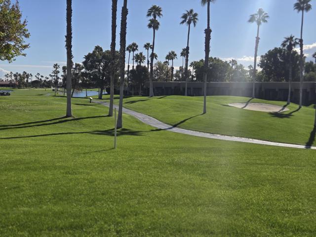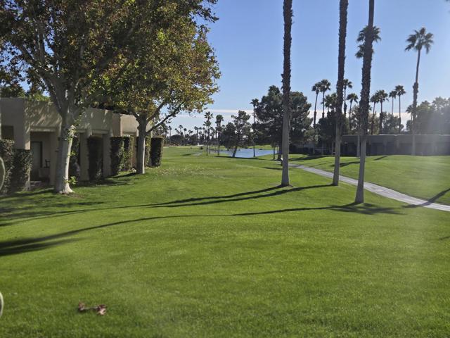 Completely remodeled, this beautifully appointed 3-bedroom end-unit condo features south-facing views of Lagos 8 green, Lagos 9 fairway, a pond with fountains, and mountain vistas. Interior upgrades include six-panel doors with glass transoms, updated cabinetry for enhanced storage, quality furnishings, a serene back patio, newer washer and dryer, and an HVAC system approximately 10 years old. Move-in ready--just bring your essentialsLand Lease extended to 2069 and Monthly Ground Rent is $186.94.HOA DUES INCLUDE: 2 DVR or HD Cable boxes and service, High Speed Internet, grounds maintained to your door by HOA ground maintenance crew, outside pest control when requested, outside water (you pay only for inside water). Gated community with 24-hour guard gate access, membership to Health and Fitness Center, Tennis, Bocce Ball, and Pickleball. Discounts and preferred tee-times for owners at the Desert Princess 27-hole PGA Championship golf course, no initiation fees, rated among the best in the valley by GOLF DIGEST. This quiet community is away from the noise yet minutes from everything that is in Palm Springs: restaurants, shopping, casinos, an international airport, the Tramway, Art Museum, Theaters, and the Street Fair.