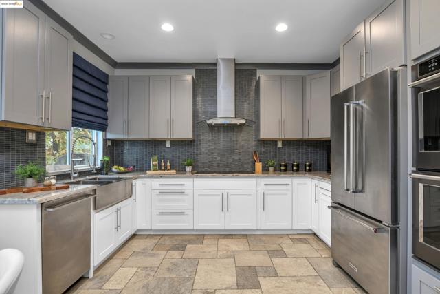 Located in a quiet cul-de-sac in the desirable Rosegate neighborhood, this contemporary 4-bedroom, 2.5-bath home blends modern design with wellness-focused living. With 2,200 sq ft on a 9,100 sq ft lot, it features natural wood and stone flooring, abundant natural light, and a striking custom stairwell with steel railings and tempered glass. The main level includes a welcoming living room with a bold accent wall and a formal dining area with French doors and integrated blinds for effortless indoor-outdoor dining. The open-concept living room and highly upgraded kitchen offer extra storage and a chopping-block counter that doubles as a breakfast bar. Wellness upgrades include a hospital-grade HEPA filter, solar, a tankless water heater, and a water softener. The spacious backyard features a saltwater pool, multiple entertaining areas, fruit trees, side-yard RV access, and a roll-up door to the tandem garage. A perfect blend of comfort and contemporary style.