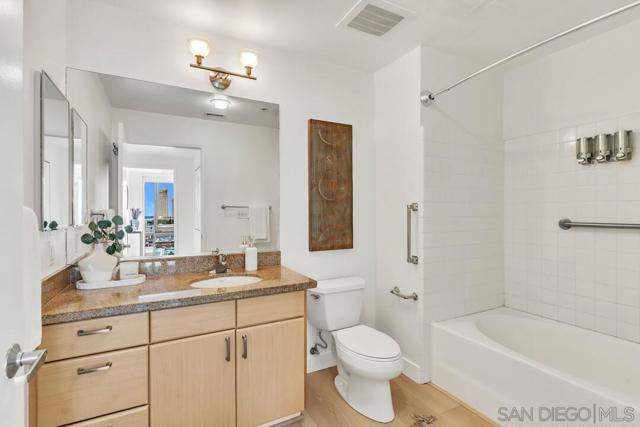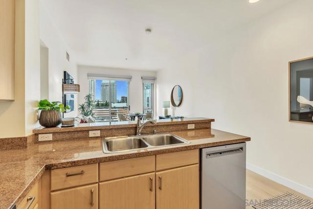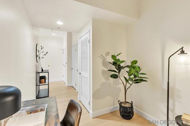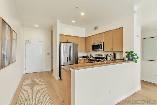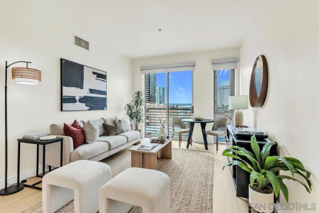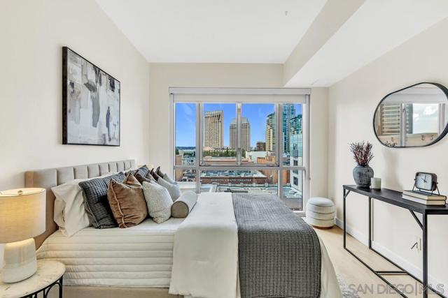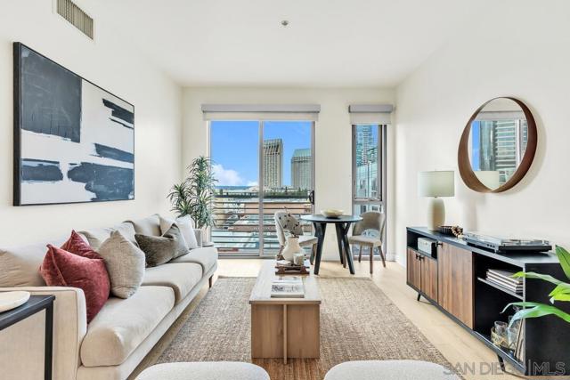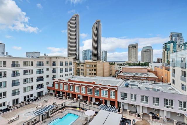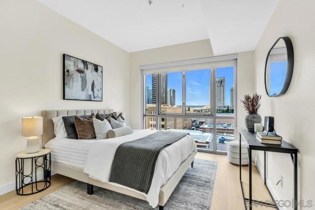 Step into this stunning, top floor corner residence in the heart of San Diego’s iconic Gaslamp Quarter, where modern style meets vibrant city energy. This oversized 1-bedroom + den home is drenched in natural light thanks to dramatic floor to ceiling windows and a private slider overlooking the city. Freshly updated with white oak luxury vinyl plank flooring, brand new stainless kitchen appliances, upgraded cabinet hardware, and a crisp new paint palette! This condo feels clean, contemporary, and undeniably chic. A rare luxury for downtown living: two secured parking spaces convey with the home! Gaslamp City Square delivers true resort-style amenities, including a pool, spa, fitness center, and BBQ courtyard, all perched on the elevated 3rd-floor deck. Step outside your front door and into the best of downtown with boutiques, cafés, nightlife, and restaurants just moments away. FHA & VA approved. Urban living at its finest! Step into this stunning, top floor corner residence in the heart of San Diego’s iconic Gaslamp Quarter, where modern style meets vibrant city energy. This oversized 1-bedroom + den home is drenched in natural light thanks to dramatic floor to ceiling windows and a private slider overlooking the city. Freshly updated with white oak luxury vinyl plank flooring, brand new stainless kitchen appliances, upgraded cabinet hardware, and a crisp new paint palette! This condo feels clean, contemporary, and undeniably chic. A rare luxury for downtown living: two secured parking spaces convey with the home! Gaslamp City Square delivers true resort-style amenities, including a pool, spa, fitness center, and BBQ courtyard, all perched on the elevated 3rd-floor deck. Step outside your front door and into the best of downtown with boutiques, cafés, nightlife, and restaurants just moments away. FHA & VA approved. Urban living at its finest!