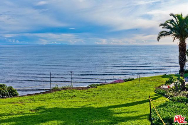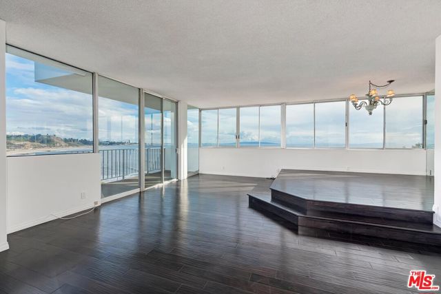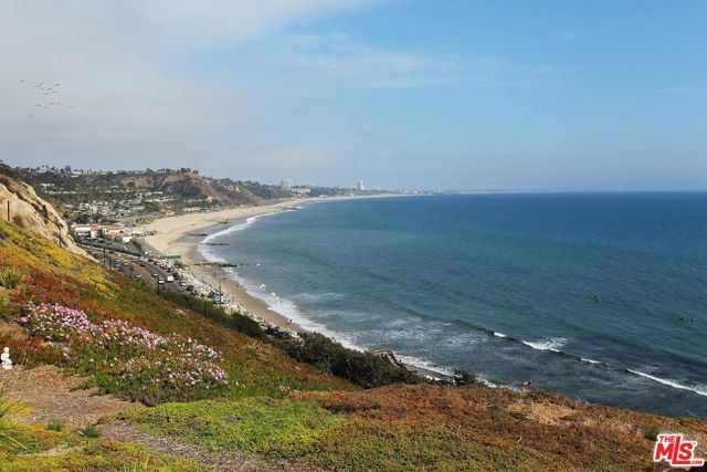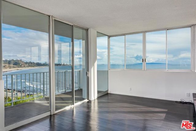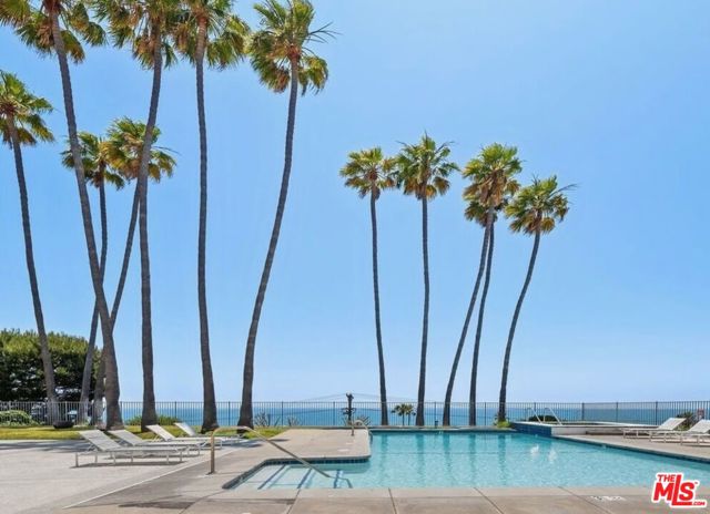 VIEWS, VIEWS, VIEWS! You don't need to go on vacation if you live here! Unobstructed, sweeping panoramic OCEAN VIEWS from Pacific Palisades' most prestigious full-service building--Edgewater Towers. Situated on a resort-like 9-acre bluff above Pacific Palisades/Sunset Beach, this single-level 2 bedroom, 2 bath, 1,379 sq ft corner unit has floor to ceiling windows and sliding doors that open to a spacious balcony capturing southwest views of Santa Monica Pier, the Queen's Necklace, and Catalina Island. This light and bright unit has an open floor plan with hardwood floors and fireplace. The cook's kitchen has modern appliances, gas range, two ovens, lots of storage and opens to oversized breakfast bar and a formal platform dining area. The primary suite features a large walk-in closet and breathtaking head-on ocean views. Edgewater Towers is a 24-hour guard-gated complex with two resort-style swimming pools, two spas, a fitness center, tennis and basketball courts, gazebo/barbeque/picnic area, dog park, and hiking trails on nine acres of beautifully landscaped grounds. HOA includes water, electricity, gas, and trash. Updated central air and heating. Two side-by-side garage parking spots and two storage units. The ultimate in Southern California luxury lifestyle with the beach, Gladstones, Vons, Equinox, and approved renovation plans for future nearby restaurants and stores. One block away is Lake Shrine and Palisades Drive with restaurants and shops. Moments away from this premiere coastal location is the Getty Villa and fine dining and shopping at Malibu Country Mart, Palisades Village, and Montana Avenue. LIFE'S A BEACH at this luxury oceanfront condo where you can enjoy daily unobstructed ocean views, waves crashing on the beach, and stunning sunrises and sunsets.