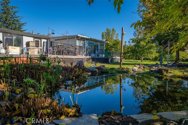 Experience country living with this spacious 1,782 sq. ft. manufactured home on a permanent 433A foundation. This 3-bedroom, 2-bath residence offers a formal dining room, dedicated laundry room, and a sun-room perfect for relaxing or entertaining. A detached two-car garage provides ample parking, complemented by two storage sheds and a cargo container for all your storage needs. Set on 2.11 acres of fully fenced land, the property is a gardener’s dream with over 70 Chandler walnut trees, 12 Robert Livermore Red walnut trees, and a variety of fruit trees including orange, Meyer lemon, Apricot, Fig, Asian pear, Apple, Nectarine, and two Pecan trees. Enjoy the tranquil ambiance of a koi pond and the convenience of natural gas. This unique property blends functionality with natural beauty, offering space, privacy, and agricultural potential in a serene setting.