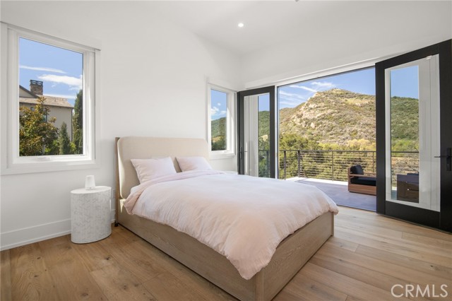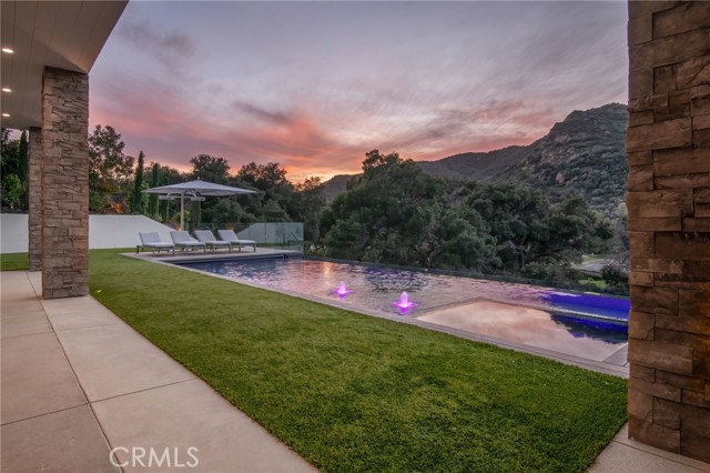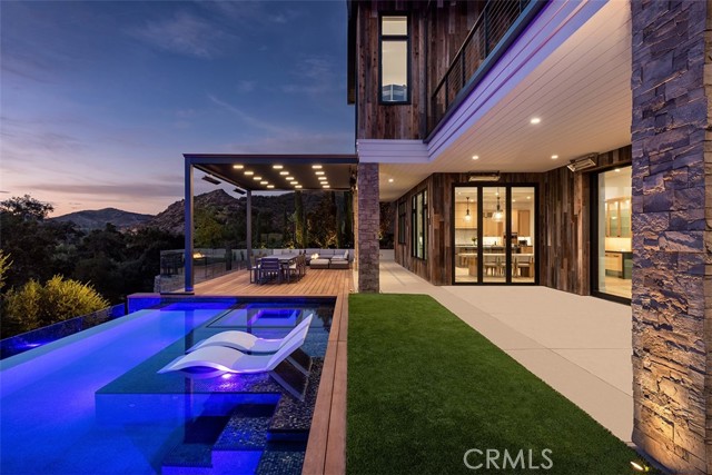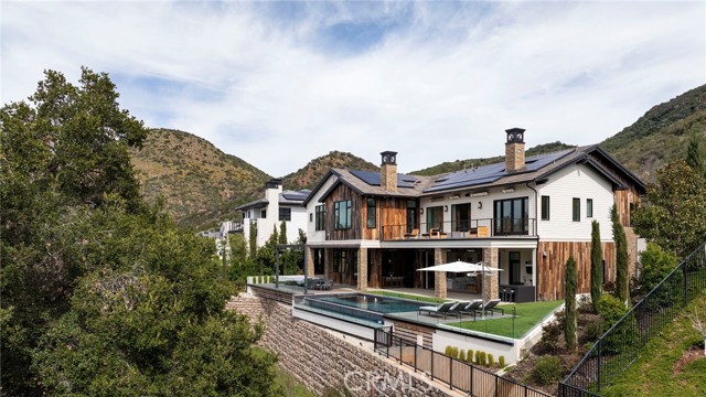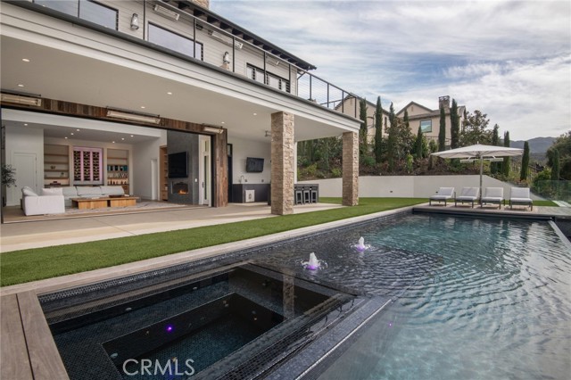 Welcome to The Oak Grove—a stylish, modern farmhouse retreat in the heart of the exclusive Lake Sherwood community. Set behind the guarded gates of Sherwood Country Club, this home delivers privacy, comfort, and a relaxed luxury lifestyle surrounded by beautiful mature oak trees, peaceful lake views, and lush golf course greens. Just minutes from The Promenade at Westlake Village, one of the most popular shopping and dining destinations in the area, you’ll enjoy easy access to local boutiques, restaurants, cafés, and everyday conveniences. Living here feels like having the best of nature and lifestyle right at your fingertips. Inside, the home features an airy split-level design with large, spacious rooms throughout. The chef's kitchen with Wolf appliances opens into the dining room and great room, creating the perfect setting for hosting friends or enjoying cozy nights in. Fleetwood sliding doors make indoor–outdoor living effortless, filling the home with natural light and inviting the outside in. Imported Brazilian white oak floors bring warmth and elegance to the space, while a striking Blue Cascais limestone fireplace and soaring 25-foot ceilings add personality and drama to the main living area. The primary suite feels like a private getaway with a spa-style bathroom and heated floors. Upstairs, two more oversized en-suite bedrooms and a convenient laundry room make daily living incredibly comfortable. A custom three-passenger elevator offers easy access between floors, and the lower-level flex space is perfect for a home theater, gym, office, or playroom, whatever fits your lifestyle. This home is fully equipped with smart-home technology controlling lighting, climate, music, and security. Automated blackout shades, a full-home water filtration system, and energy-efficient features, including Tesla Powerwalls and tankless water heaters, add to the comfort and convenience. The backyard is made for fun and relaxation. A widened infinity-edge caisson pool (one of the largest in the neighborhood), spa, tanning ledge, built-in BBQ center, and a cozy pergola with remote-controlled heaters create an ideal setting for entertaining or winding down after a long day. The Oak Grove is more than a home, it’s a lifestyle. Stylish, comfortable, perfectly located, and designed for both fun and relaxation, this is where every day feels a little more enjoyable.