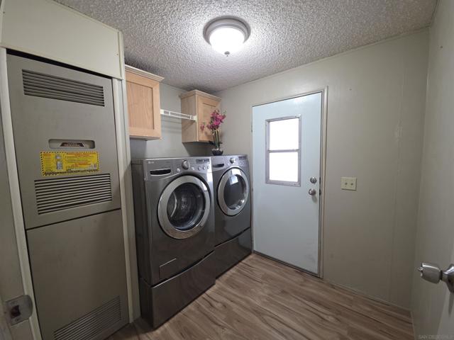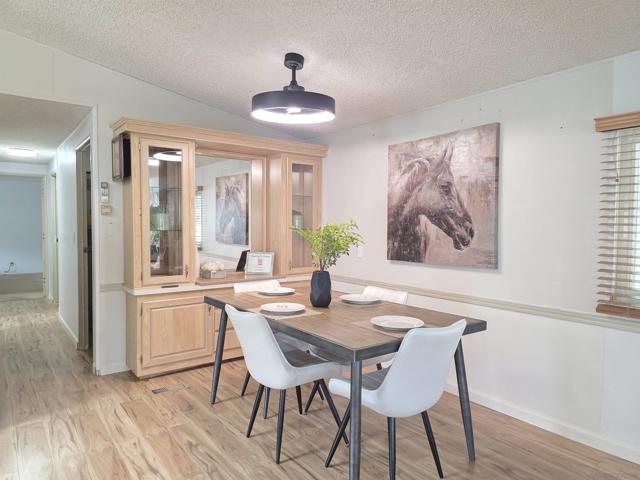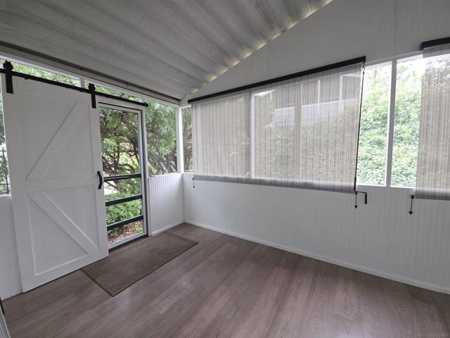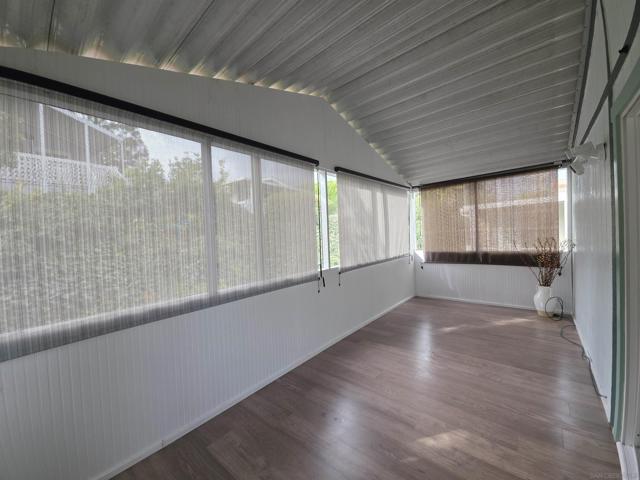 Welcome to The Cliffs: A 55+/21+ Community in the Heart of Allied Gardens! Enjoy comfort, convenience, and canyon views in this charming 1991 manufactured home located minutes from shops, restaurants, parks, and major highways. The Cliffs sits on 21 terraced acres overlooking the San Diego River Gorge, offering a convenient setting in East Mission Valley. This move-in ready home features 2 bedrooms, 2 full baths, and a bonus private covered patio off the primary bedroom, perfect for relaxing, reading, or creating a cozy workspace. The living room, dining area, and hall have luxury vinyl plank flooring, and both bedrooms include soft carpet and remote-controlled ceiling fans. You’ll stay comfortable year-round with double-pane and bay windows, 2 mini split units system with heating and AC (1 in the living room and 1 in the primary bedroom), plus central heating throughout. The kitchen is bright and functional with a 5-burner gas stove, counter-depth stainless steel fridge, full-size dishwasher, and plenty of cabinet space. The indoor laundry room includes a full-size front-loading washer and gas dryer with extra storage. Step outside to a well-kept backyard filled with roses and greenery, along with two storage sheds for your tools and belongings. A 2 car tandem carport provides convenient parking, and guest parking is just around the corner. Tucked away in a quieter part of the community, away from the main clubhouse and pool, this home offers extra privacy while still giving you access to all The Cliffs amenities. The Cliffs has two Clubhouses: Main Clubhouse and Upper Clubhouse. Each has a kitchen, game room, library, and function room; billiards, ping pong, TV, and Wi-fi are also available. An outdoor heated swimming pool and spa are part of the Main Clubhouse complex. Also part of the Main Clubhouse complex are courts for shuffleboard and horseshoes, an unfenced area for dogs (25lbs or smaller), and an outdoor area suitable for parties and grilling (with your own grill). The Main Clubhouse can be reserved by residents for private parties. The Cliffs has a lending library of more than 2,000 books, audiobooks, DVD movies, puzzles, CDs, and even a few vinyl albums! The library collection is split between the Main and Upper Clubhouses. The Cliffs are happy to now be adding a children’s section, to be utilized during those visits from the young readers! The Cliffs Library is a volunteer-run effort and does not have a budget. Lending is done on the “honor system”. They welcome all donations in good condition. More details can be found on https://www.thecliffssd.com/activity/