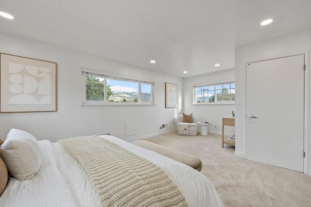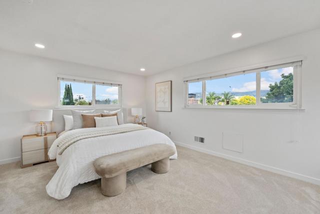 Welcome to a spacious five bedroom residence that blends comfort and versatility. The main level is filled with natural light, where open living and dining spaces transition effortlessly into a bright sunroom, creating a warm and connected environment for gathering or quiet moments at home. The primary suite offers a peaceful retreat with mountain views and a generous closet, while a desirable downstairs bedroom with its own ensuite provides exceptional flexibility for extended family, guests, or a private workspace. Outdoors, the backyard offers a balanced mix of function and relaxation, featuring a well kept lawn, expansive driveway, two storage sheds, and direct access from the sunroom for seamless indoor outdoor living. Recent enhancements elevate the homes overall comfort, including fresh interior and exterior paint, new luxury hard surface flooring, plush new carpet, refined lighting selections, and dual pane windows. The location adds significant appeal, with Sprouts, Target, Eastridge Mall, Regional Medical Center, and Lake Cunningham Park all close at hand, and convenient access to 680 and 101 ensuring an easy connection to the rest of the Bay Area.