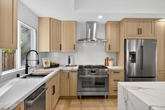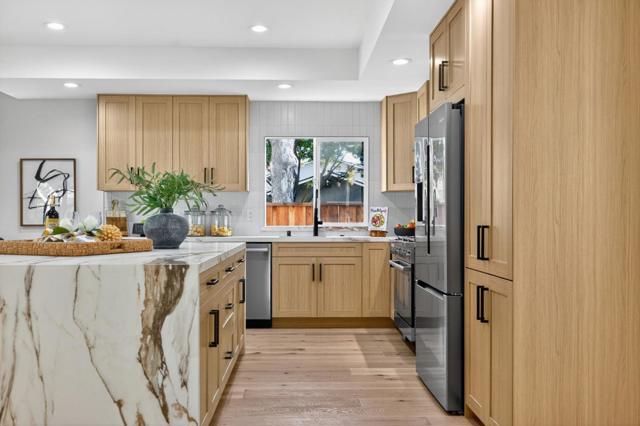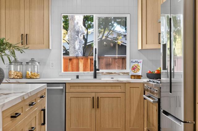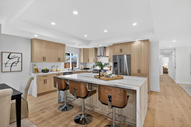Welcome to 2447 Booksin Avenue, a beautifully remodeled home in the heart of Willow Glen. Nestled on one of the neighborhoods signature wide, tree-lined streets, this property blends timeless charm with high-end modern design. Completely renovated from top to bottom, this home features wide-plank engineered hardwood floors, stunning quartz waterfall countertops, high-end oak shaker cabinetry, and brand-new dual-pane windows throughout. The open-concept layout flows seamlessly between the kitchen, dining, and living spaces, enhanced by recessed lighting, coffered ceilings, and premium stainless-steel appliances that elevate everyday living. Offering four bedrooms and two-and-a-half beautifully updated bathrooms, the home delivers both comfort and functionality with thoughtfully selected modern finishes. A brand-new roof, trex decking, updated systems, and fresh landscaping add peace of mind while enhancing curb appeal. Located just minutes from downtown Willow Glens boutiques, cafés, and top-rated schools, this turnkey residence offers the perfect blend of style, convenience, and community. A rare opportunity to own a fully renovated home in one of Willow Glens most desirable neighborhoods.