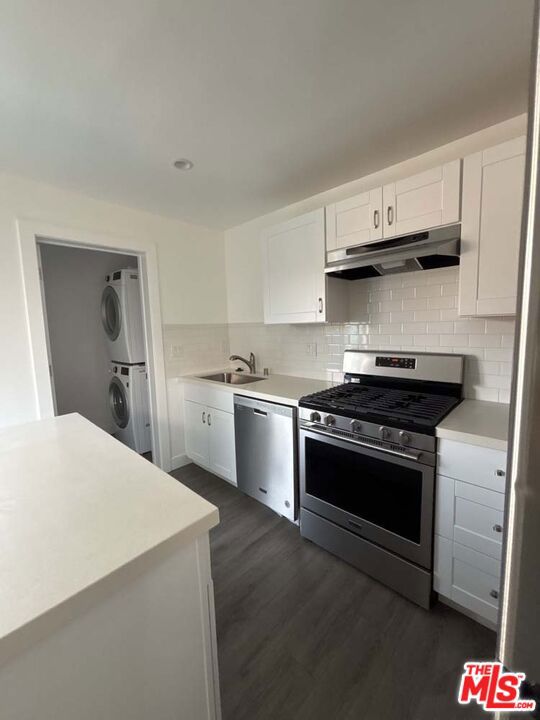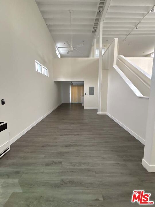 Experience elevated living in this stunning 2-story, 2-bedroom, 2-bath unit with 2 car garage, 3 private balconies in the back + 1 small on the side, approx. 1,650 sq. ft. Enter on the 2nd floor of the building into a spacious living room featuring luxurious vinyl flooring, wall heater, ceiling fan, and soaring high ceilings. First floor of the unit features, huge living room, live/work loft space with full modern bath with a walk-in shower, private balcony, on one side, and a huge family/dining room next to the modern kitchen with island and stainless steel appliances, including oven/stove with hood, dishwasher, microwave, and refrigerator. Ample cabinets and storage space, and another private balcony with patio. Stackable washer and dryer are conveniently located in a separate cabinet by the kitchen. Staircase in the middle of the room takes you to the second floor of the unit (3rd floor of the building). This level offers a full bathroom with tub and shower combo, apple storage and cabinets, the two bedrooms with closets on each side of the bathroom, and another loft area with an open layout. This unit combines functionality with sophisticated design, ideal for those seeking a contemporary urban lifestyle in Venice, CA. Unit comes with its own 2-car garage with tandem parking in the back. Long garage provide additional storage space as well. Located in the heart of Venice, you're walking distance to Whole Foods, the beach, Abbot Kinney, and world-class restaurants, shopping, and Venice Beach. Perfect for artists, photographers, stylists, filmmakers, or anyone who wants to blend work and lifestyle in one inspiring space.