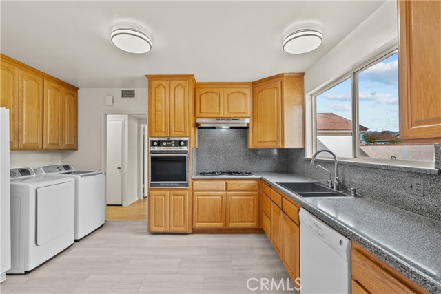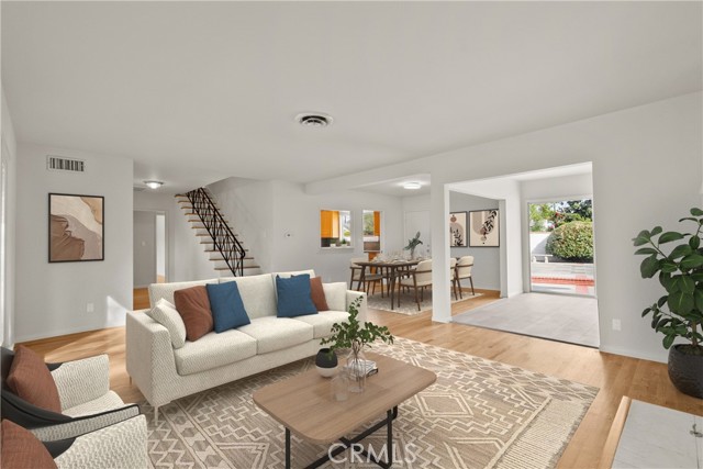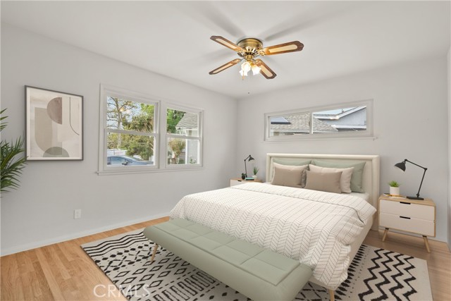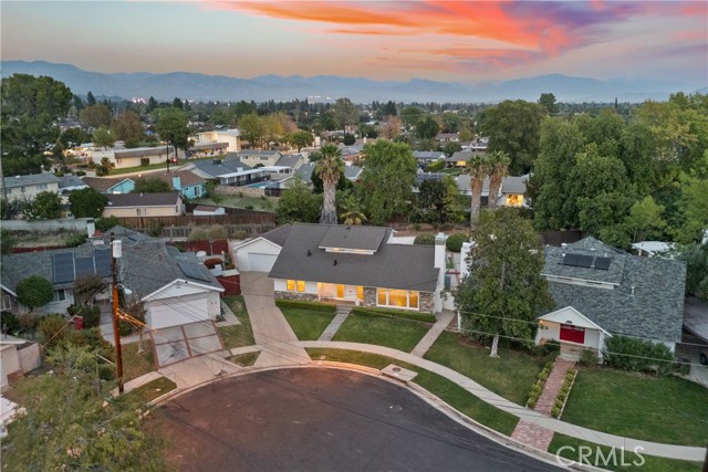 Nestled on a quiet cul-de-sac in a highly sought-after Granada Hills enclave, this beautifully maintained mid-century Cape Cod residence perfectly blends timeless charm with modern comfort. Surrounded by a friendly, well-kept neighborhood, this inviting home offers an ideal setting for relaxed family living. Charming curb appeal and a welcoming front porch set the tone for the bright, open 4-bedroom, 2-bath floor plan featuring approximately 1,760 sq. ft. of comfortable living space. Inside, rich satin-finish hardwood floors, fresh interior paint, abundant natural light, and classic architectural details create an atmosphere of warmth and character throughout. At the heart of the home, the cook’s kitchen features fine cabinetry with generous storage, clean laminate countertops, quality vinyl flooring, and fresh paint. The kitchen is equipped with a gas oven and range, dishwasher, and refrigerator, plus an adjacent laundry area with washer and dryer included. The adjacent dining area offers easy access to the patio—ideal for casual meals or entertaining guests. The inviting living room showcases a handsome fireplace and floor-to-ceiling windows overlooking the front yard, filling the space with natural light. The spacious bonus space with sliding doors to the backyard provides a perfect setup for a home office or cozy den. Step outside into your private backyard oasis—beautifully landscaped and ideal for dining, entertaining, or quiet relaxation. Facing east, the yard enjoys soft morning light and cooling afternoon shade, creating a comfortable outdoor retreat year-round. The expansive backyard offers excellent potential for a freestanding ADU. Additional highlights include freshly surfaced hardwood floors, dual-pane windows, copper plumbing, central air and heat, updated electrical switches and outlets, and sewer line clean-out. The extended concrete driveway and detached two-car garage provide ample parking and storage. Conveniently located near CSUN, schools, shopping, dining, and freeway access, this move-in-ready gem combines classic mid-century style with today’s modern comforts—ready for you to call home. *Some photographs have been virtually staged.*