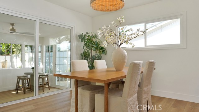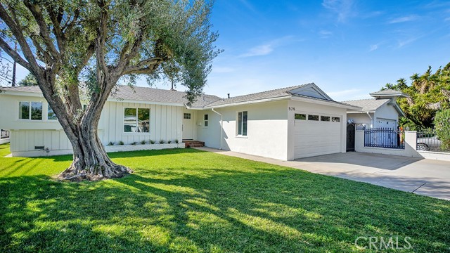579 N Century Dr, Anaheim – A Reimagined Mid-Century Masterpiece Arrive in style through a private gated driveway poured in crisp, new concrete, framed by lush, manicured landscaping that sets the tone for the luxury within. A bold new front door with sleek matte black hardware, a smart video doorbell, and a sculptural designer light fixture welcome you home. Step across the threshold onto wide-plank white oak luxury vinyl flooring that flows seamlessly beneath LED recessed lighting and fresh designer paint. Every detail is elevated: tall new baseboards, refined door casings, and modern matte black hardware throughout. The heart of the home unfolds in an open-concept living space anchored by a striking double-sided wood-burning fireplace (with gas hookups for instant ambiance). Oversized dual-pane windows and new sliding glass doors flood the room with California sunlight, drawing your eye to the sun-drenched sunroom – an entertainer’s dream with panoramic garden views and effortless indoor-outdoor flow. The chef’s kitchen is a study in elevated design: rich oak panel cabinetry, gleaming quartz countertops and full-height backsplash, a deep quartz farmhouse sink, and custom floating shelves. Top-tier appliances include a luxury gas range, paneled dishwasher, built-in microwave, and sleek range hood – all centered beneath a statement chandelier in the adjacent dining area. Retreat to the spacious primary suite, where a spa-inspired en-suite awaits: designer porcelain tile shower, high-end fixtures, and soft-glow lighting that transform routine into ritual. Two generously sized guest bedrooms feature new ceiling fans and custom closet systems, while the hall bathroom indulges with an oversized soaking tub and artisan tilework. Outside, the private backyard offers a serene escape, accessible via new sliding glass doors from both the sunroom and living areas – perfect for al fresco dining or quiet mornings with coffee. Every inch of 579 N Century Dr has been meticulously reimagined with timeless materials, thoughtful design, and uncompromising quality. This is not just a house – it’s your sanctuary of modern luxury in the heart of Anaheim