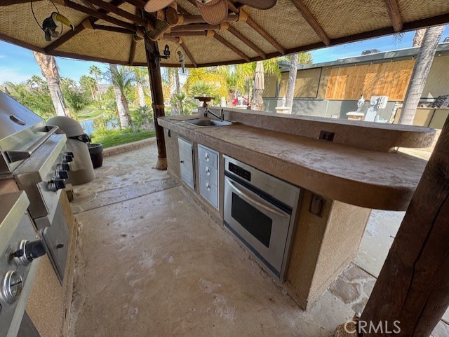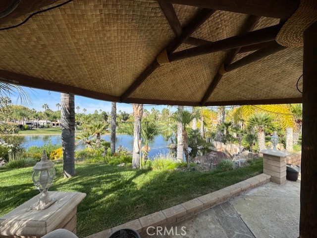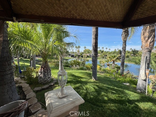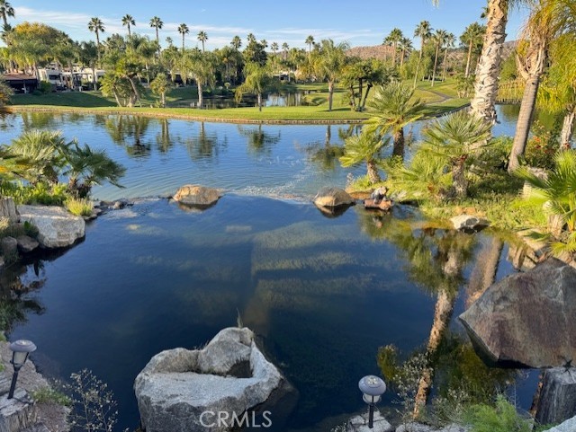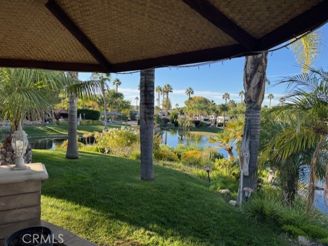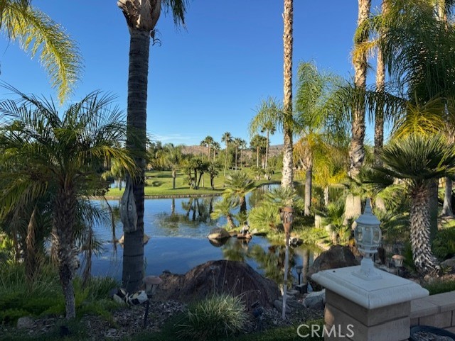 One of the most Amazing Views of 7th green, Waterfall, Pond and Sunsets in the park. Shingled Palapa Style roof with Built-In BBQ & Stove Top, Oven, Sink, lots of storage with double Islands and Built-In large screen TV for entertaining. Awesome curb appeal with tons of plants and curb core and a sitting wall surrounding the property. Have to check this one out.....This place has everything; Club House, Tennis Courts, Pickle Ball Courts, Horse Shoe Lawn, Dog Park, Fishing Lake, Unlimited Golf on 14 hole Executive course, Fitness Room, Library, Laundry facilities, 5 pool and Jacuzzi areas, Hiking and Riding Trails, and Restaurant all inside 24 hour gated community. You can live here, or rent your space. Just think of it; Peace and quite serenity all just 25 minutes from Temecula Wine Country. No age restriction. It is backed to one of several Beautiful Ponds on the Golf Course. The Ginormous Tree provides shade and picturesque area for relaxing with a cocktail in hand. Financing Available...