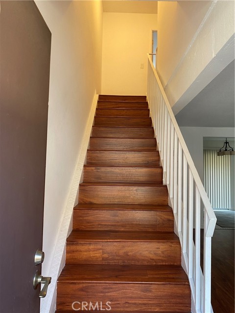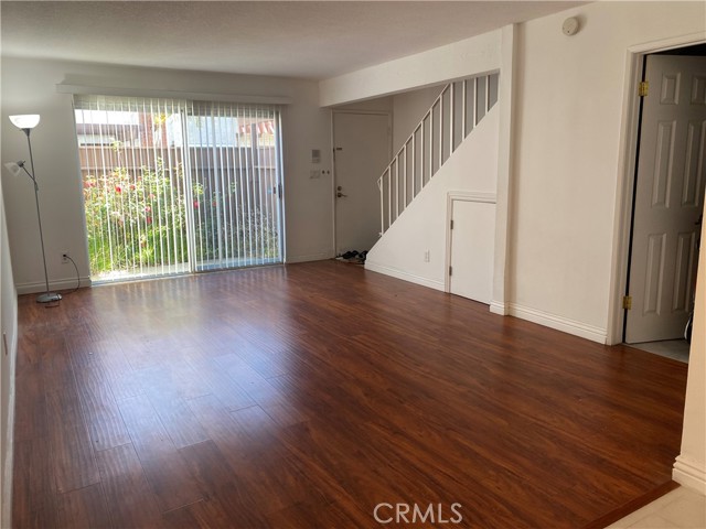 It is a beautiful, gated townhouse with 2 bedrooms and 1.5 bathrooms. 2 bedrooms and 1 full bathroom with double sink are upstairs. Half bathroom on downstairs. Recessed light in the nice kitchen. The entire floor is laminated. There is a backyard. One private patio is in front. The second bedroom on the second floor has a private patio too. the security covered parking is side by side with storage. The photos are before it was rented.