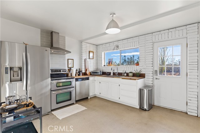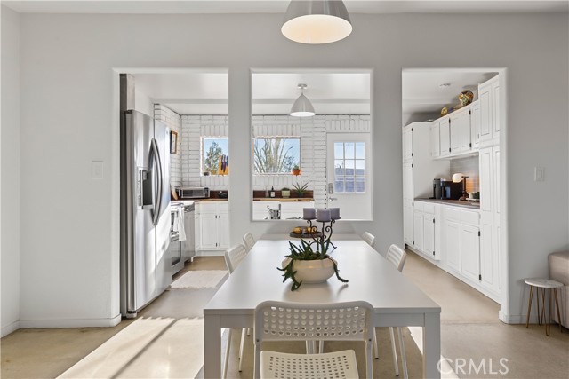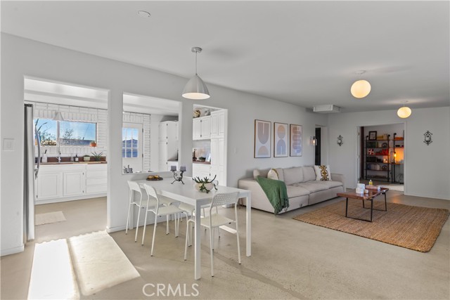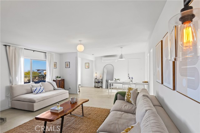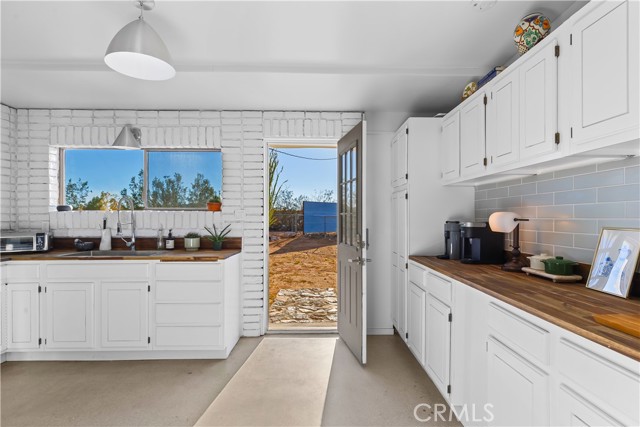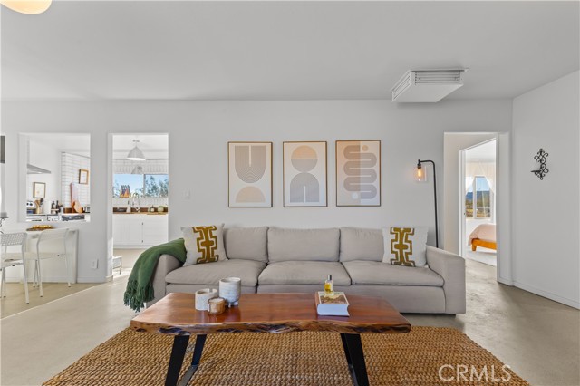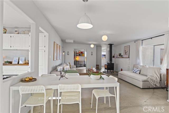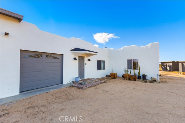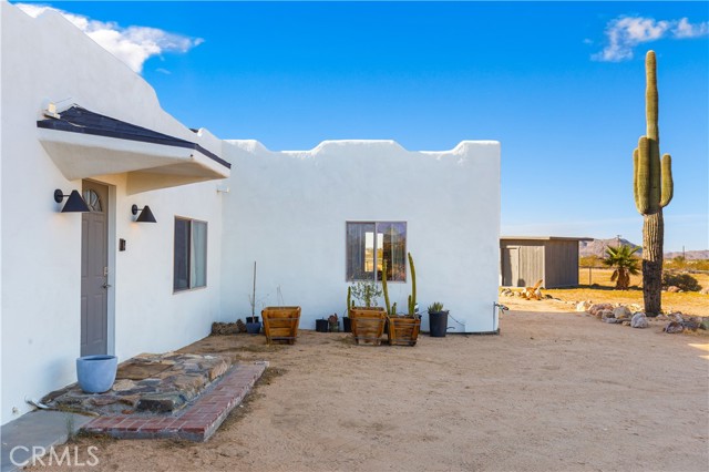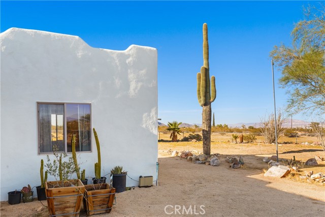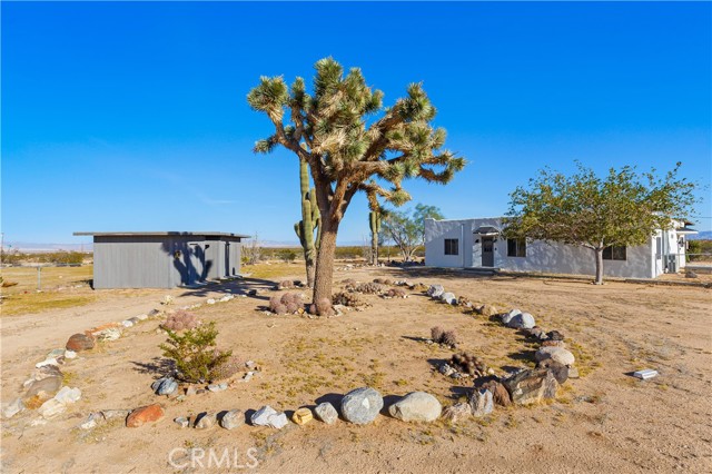 Escape to 5 private acres where desert magic meets mid-century charm. This 1956 home blends vintage character with modern comfort - polished concrete floors with stunning aggregate detail, a cozy wood-burning fireplace, and brand new ductless heating and cooling for year-round comfort. The home's open floor plan connects living and dining spaces flooded with natural light. Three bedrooms capture gorgeous afternoon sun, while the primary suite features a walk-in closet. French doors open to a versatile third room - perfect home office or creative space. The huge 770+ sq ft garage offers many possibilities - in fact, the original owner built a private airplane inside. Whether you envision a workshop, art studio, or conversion to an ADU, you're looking at over 2,200 sq ft of potential. Two detached storage sheds provide ample room for all your desert toys and equipment. Your 5 acres showcase the desert's natural beauty. Two giant saguaro cacti (decades old) stand alongside a majestic Joshua Tree all in your front yard - treasures rarely found in private yards, even in the desert - while ocotillo, barrel cactus, and fan palms create layers of desert texture. Every sunset paints the sky electric. Every clear night offers an out-of-this-world view of the stars. The privacy and tranquility of this property make it an ideal desert retreat or full-time residence.