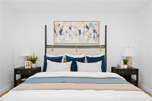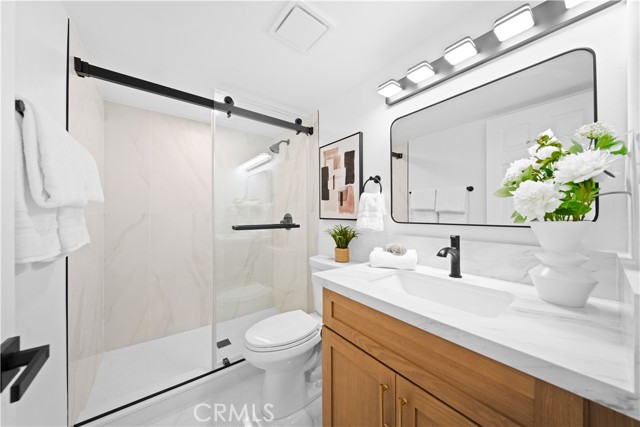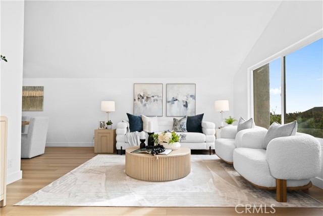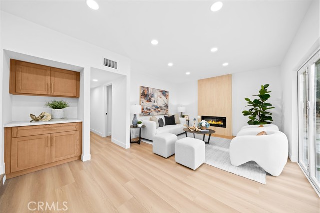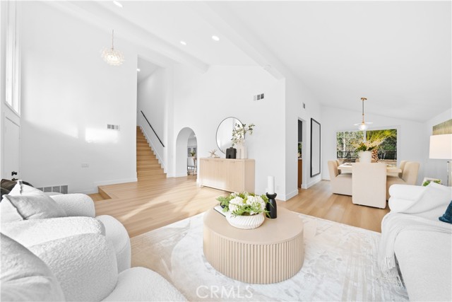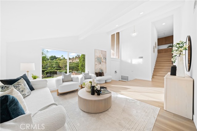 In the heart of Mission Viejo’s sought-after Madrid Del Lago community, this exquisitely renovated home invites you to experience refined Southern California living. Designed with meticulous attention to detail, the property features high cathedral ceilings that welcome natural light, creating a warmth and inviting atmosphere. The formal living room is spacious and enhanced by a garden window showcasing the picturesque front yard. The thoughtfully designed floor plan includes a chef’s kitchen equipped with brand new top-of-the-line appliances, quartz countertops, elegant cabinetry, and stylish fixtures. The sunk-in family room provides a perfect space for entertaining, featuring an elegant fireplace and a bi-folding door that opens up an entire wall for seamless indoor-outdoor living. The outdoor area offers a stunning view and ample space for social gatherings or relaxation. This home boasts 4 spacious bedrooms and 3 full bathrooms, including a convenient main-level guest suite. The master retreat is a true haven, featuring high ceilings, a large walk-in closet, and a luxurious master bath with dual vanity sinks, new cabinetry, updated hardware, and a walk-in shower. Upstairs, the two oversized bedrooms share a fully remodeled bathroom with premium upgrades. Additional enhancements include new plumbing throughout, new windows, updated flooring, and a brand new HVAC system. This property is a perfect blend of comfort, elegance, and modern design, ideal for anyone seeking a refined lifestyle in one of Mission Viejo’s finest communities.