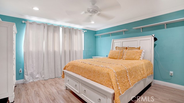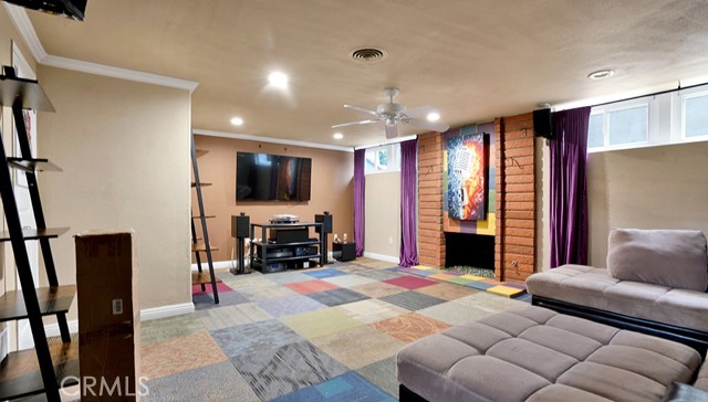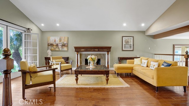SOUTH HUNTINGTON BEACH - With generous proportions, four spacious bedrooms and large, beautifully maintained grounds, this stylishly upgraded home offers room to grow in the heart of Huntington Beach. Located near the end of a quiet cul-de-sac street, the open split-level design extends approximately 2,780 square feet and showcases a double-door entrance, vaulted ceilings, large windows and a dramatic multi-tiered staircase. Impressive entertaining is easy in a living room with custom fireplace and a formal dining room with crown molding and direct access to the backyard. Sliding-glass doors open the family room to the backyard as well, and the adjacent kitchen is embellished with granite countertops, stainless steel appliances, white cabinetry and a peninsula-style breakfast bar. As an added bonus, this inviting residence offers an extra-rare, fully finished basement complete with a fireplace. Two- and one-half baths are updated with today’s popular finishes and fixtures, and the primary suite hosts a vaulted and beamed ceiling, handsome accent wall, French doors opening to an expansive balcony, a walk-in closet with custom built-ins, and an en suite bath with tiled shower and two sinks. Custom recessed lighting illuminates living spaces that are enhanced with wood and tile flooring, crown molding, a soothing color palette, ceiling fans and elegant lighting fixtures. Grounds span approximately 5,459 square feet and include a private backyard with pool. Perry Elementary School is just steps from home, and shopping centers, beautiful city parks, miles of sandy beaches, Huntington Beach’s famous pier, and the vibrant Pacific City are just minutes away.