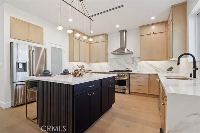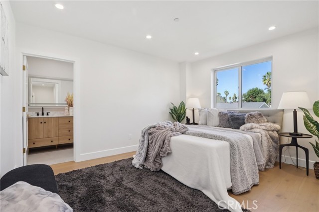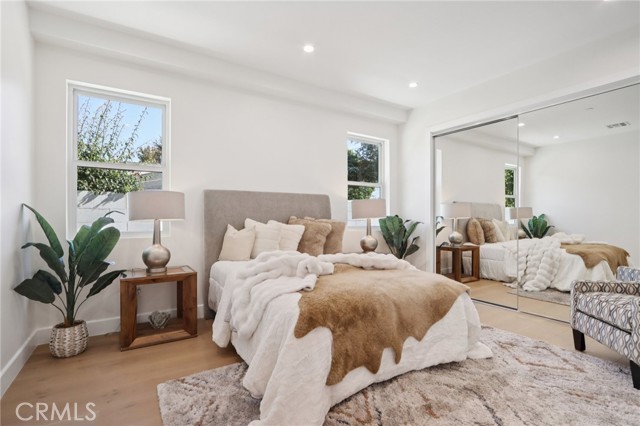 Step inside this spectacular newly built residence and ADU perfect for generational living and offering ample space for both families. The main house spans 2,450 square feet on two levels and consists of 5-bedrooms and 5-bathrooms. The home boasts high ceilings, oak wood floors, custom kitchen with oak cabinetry, premium appliances, quartz countertops, a wonderfully sized island, a walk-in pantry, and dining quarters. On the first floor you will also find an ensuite bedroom, a tastefully designed powder room for your guests and the living room beaming with natural sunlight. On the second floor, there are 4 additional bedrooms, three being ensuite bedrooms and a large-sized laundry room with cabinets plus extra storage closets in the hallway to store more items. The main house also has an attached garage with epoxy floors and cabinets. As you step outside to the backyard, you’ll find a lushly landscaped lawn, covered patio and room to add an outdoor BBQ area. At the end of the lot, is a 1,200 square foot ADU which includes 3 bedrooms and 2 bathrooms. Offering ample privacy and space, the home is ideal for a multigenerational living or for additional income. Featuring meticulous craftsmanship the home is a product of 2+ years of design and construction built on a 8,900 square foot lot. Property is located in Central Van Nuys with a close proximity to shops and restaurants.