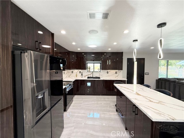 Stunning modern ranch on 7.1 acres, just 1 minute from Highway 152. This fully remodeled 1,535 sq. ft. home features 3 bedrooms, 2 bathrooms, and high-end finishes throughout. Complete top-to-bottom renovation includes new electrical, plumbing, insulation, drywall, stucco, Cool Roof (40-year), solar roof vents, modern black windows, tile flooring, sound system, surveillance cameras, garage tile flooring, and Tesla charger. Beautiful custom kitchen featuring new cabinets, island, skylights, premium appliances, and a Lefton 33x22 Waterfall LED sink with digital temperature display. Both bathrooms have been fully redesigned with modern finishes and skylights. Additional upgrades include new front iron fencing, 80% new wood perimeter fencing, new doors, new garage doors with remote controls, and a full laundry room equipped with a washer and dryer. Perfect for anyone seeking modern luxury with open land for farming, livestock, trucks, or a peaceful rural lifestyle.