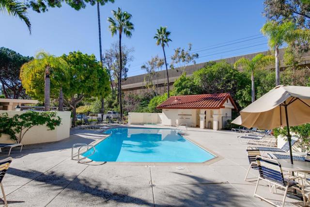 Top floor, corner unit in the beautiful La Paz subdivision of La Jolla Colony. This condo features 2 bedrooms, 2 full bathrooms, newer flooring, recessed lighting, and a renovated kitchen with newer appliances. The unit is set in the middle of the complex, off of the street to provide a quiet location. Open living space with vaulted ceilings and plenty of large windows for natural light. Newly rebuilt deck is accessible off of the living room. Kitchen features plenty of cabinets, refrigerator, microwave, dishwasher, and stainless steel sink. Secondary bedroom with full bathroom just outside - newer shower tiled walls, sliding shower door, and shower fixtures. In unit washer and dryer - side by side with extra storage in the closet. Generous sized primary bedroom with large walk-in closet. Upgraded master bathroom shower with whole wall tiles and fixtures. HOA dues include water, sewer, trash, building insurance, common area maintenance, roof, exterior building maintenance, and off-site property management. Two assigned carport parking spots! Community amenities feature a heated swimming pool and hot tub. The La Jolla Colony master planned community is minutes from UCSD, La Jolla beaches, the trolley, and 3 shopping centers with an abundance of restaurants, grocery stores, and services. The large, private park in La Jolla Colony is perfect for walking, exercising, and enjoying the serene outdoors. A prime location indeed! *Some photos are virtually staged*
