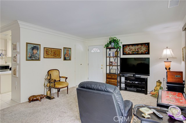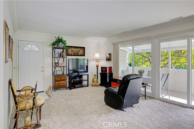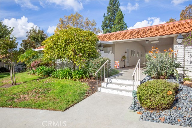 Nestled in a premium area of the community known as Nob Hill, this Casa Linda Garden Model has no one above or below. Located in a lovely Cul-de-Sac with parking right in front of your new home. From the inside, you will love looking out towards a view of the beautiful plumeria tree, pigmy palms and other lush foliage surrounding the home. This warm and meticulously maintained home features 2 bedrooms 1 ¾ baths, approximately 1010 Sq. Ft. of living space and comes complete with numerous upgrades including; central heating/air, dual pane windows, smooth ceilings, crown molding in the living and dining room, newer entry door with glass insert, plantation shutters in the kitchen, master bedroom and master bath, stacked washer/dryer, ceiling fan in the dining room and master bedroom, mirrored closet doors in the master bedroom, custom closet doors and shelving in the guest bedroom, updated clear shower door in the master bath, a solar tube as you enter the kitchen and another in the guest bath infuse light into the home, the flooring is a combination of carpet and tile. The water heater has been relocated outside allowing extra closet space in the master bedroom. Fabulous tiled front patio features a new custom patio cover with several translucent panels allowing the light to pass through but block rain and UV rays, the patio wall has been lowered so you can enjoy the view. Kitchen features many original components maintained by the HOA, the owner added pull out shelving in the cabinets below the cooktop and a spice rack inside the pantry. The carport is conveniently located just to the left of the home; it has upper and lower cabinets providing extra storage. Truly a wonderful home, offering carefree living at an exceptional price. Make this lovely home yours and start enjoying all the amenities of Laguna Woods Village ~ Senior Living at its Finest ~ With 7 Clubhouses, 5 Pools, 2 Fitness Centers, 10 Tennis & Pickleball Courts, Private Library, 2 Professional Golf Courses, Private Restaurant & Lounge, Equestrian Center with Stables, 10 Craft Workshops, an 814 seat Auditorium/Theater & the list goes on. In addition, there are over 200 clubs & organizations providing an enjoyable & diversified opportunity for everyone. Just minutes from World Class Beaches, Restaurants, Shopping, Entertainment & Easy Freeway Access
