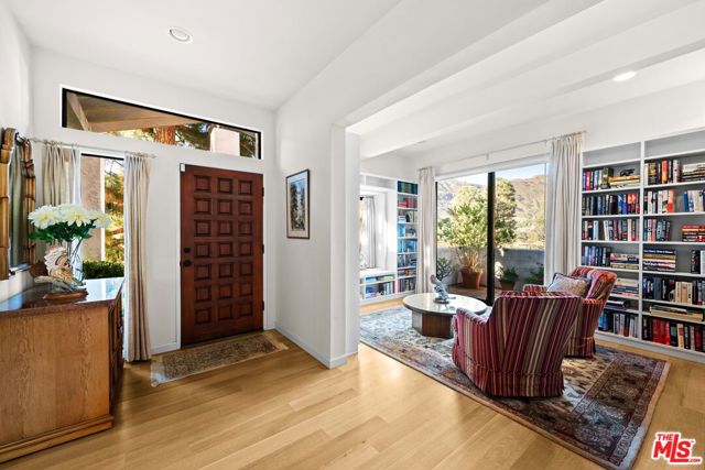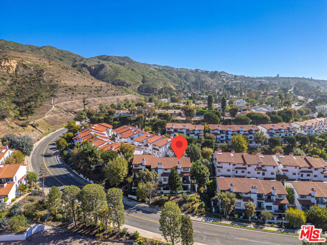 Stunning Mountain Views & Resort-Style Living in the Palisades Highlands! This coveted end-unit Michael Lane Villa townhome offers nearly 2,500 sq ft of refined living across three thoughtfully designed levels. Framed by dramatic vistas of the Santa Monica Mountains, the home seamlessly blends tranquility, elegance, and versatile functionality. A welcoming front patio and dedicated foyer introduce the residence and open to a generous multi-purpose flex space - perfect as a den, library, sitting room, creative studio, gym, or guest suite - complete with a wet bar and a full en-suite bath. Enjoy access to the expansive private patio overlooking sweeping canyon and mountain scenery, creating an exceptional indoor outdoor flow ideal for relaxation or entertaining. The mid-level conveniently offers direct access from the private two-car garage and features an airy formal living room with soaring ceilings, a fireplace, and a private balcony capturing stunning mountain and canyon views. The adjacent formal dining room with views is perfect for large gatherings and connects effortlessly to the spacious kitchen, with ample cabinetry and storage, granite countertops, and a charming breakfast area. A powder bath completes this level. Continue upstairs to the grand primary suite - a serene retreat with its own sitting area, cozy fireplace, private view balcony, expansive walk-in closet with two additional closets, and a luxurious en-suite bath designed for comfort and unwinding. A spacious second-bedroom suite offers excellent closet space, a beautifully updated bathroom and provides flexibility for guests or family. Additional highlights include high ceilings, multiple balconies, and the extra natural light and privacy afforded by an end-unit setting. Residents enjoy access to resort-style community amenities, including a beautiful pool/spa, sauna, fitness center, 2 guest parking spaces conveniently located behind this home's garage, and an HOA that includes water and ACS Palisades Highlands security. This exceptional residence delivers a rare combination of stunning views, surrounding natural beauty, and spacious sophisticated living in one of the most picturesque enclaves of the Palisades Highlands.