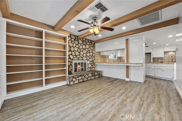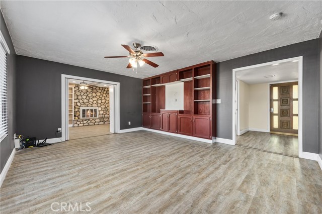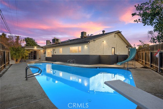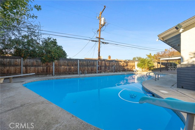 Welcome to this charming 3-bedroom, 2-bathroom turnkey home, nestled in a quiet cul-de-sac with a private pool and backyard oasis—perfect for relaxing or entertaining! Step inside to a bright and inviting kitchen and dining area, featuring classic tile countertops, abundant cabinet and pantry storage, a large island, a dual sink, and a built-in wine cabinet. Expansive windows fill the space with natural light and open effortlessly to the living area. The family room features a beautiful real-stone fireplace, creating a warm, inviting centerpiece for cozy evenings or lively gatherings, complemented by built-in display cabinets for added charm. The formal living area offers ample space for entertaining or everyday living. The primary suite is very spacious and filled with natural light, featuring the primary bathroom with granite countertops, a vanity, and a grey-tiled shower. Two additional bedrooms are bright and airy, each with ample closet space, and a second bathroom with granite countertops and a tiled shower. A sparkling pool and private backyard make this home perfect for enjoying the outdoors. Ideal for families, this home is conveniently located near local schools, stores and offers comfort, space, and a welcoming neighborhood atmosphere!