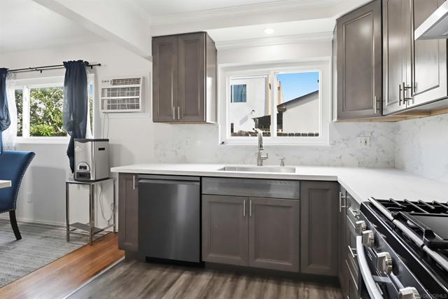 Welcome home! Large two Bedroom, two full Bathroom unit with an oversized one-car garge in gated complex. Recenty upgraded kitchen to include quartz counter, stainless steel appliances (smart refrigerator) and laminate flooring. Additional amenities include updated bathroom, in-unit washer/dryer (stacked), dual pane window and original hardwood flooring. Sized master has an on-suite bathroom and walk-in closet. This ground floor unit is situated in a nicely maintained garden style common area. Two additional HOA permitted on-site parking spaces included. HOA fee includes water and trash services. Unit is 0.70 miles to College Grove Shopping Center and I-94 and approximately 7 minute drive to SDSU. Shopping, restaurants and entertainment are minutes away! Large two Bedroom, two full Bathroom unit with an oversized one-car garge in gated complex. Recenty upgraded kitchen to include quartz counter, stainless steel appliances (smart refrigerator) and laminate flooring. Additional amenities include updated bathroom, in-unit washer/dryer (stacked), dual pane window and original hardwood flooring. Sized master has an on-suite bathroom and walk-in closet. This ground floor unit is situated in a nicely maintained garden style common area. Two additional HOA permitted on-site parking spaces included. HOA fee includes water and trash services. Unit is 0.70 miles to College Grove Shopping Center and I-94 and approximately 7 minute drive to SDSU. Additional shopping, restaurants and entertainment are minutes away!