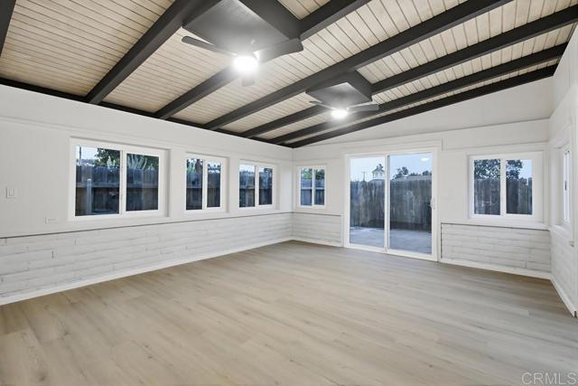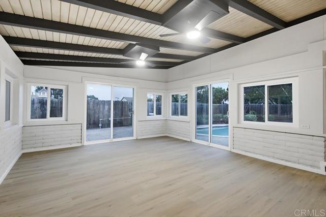 Beautifully remodeled and ideally located, this spacious Allied Gardens/Del Cerro home offers modern style, functionality, and flexibility. With 3 bedrooms plus an additional bonus room, the layout is perfect for a growing household or multi-use living. The extra room has its own private entrance, making it an excellent option for a home office, studio, guest space, or even a potential fourth bedroom. Designed with an open-concept in mind, the home features vaulted ceilings and a bright, airy atmosphere. The chef’s kitchen showcases a large peninsula island with premium quartz countertops, new modern shaker cabinets, stainless steel appliances, a built-in microwave, and a new refrigerator—ideal for hosting or everyday cooking. The oversized family room stands out with exposed ceiling beams, adding a stylish modern-cabin touch that makes the space truly unique. Step outside to enjoy a newly plastered pool featuring new tile, new coping, and a new LED light, perfect for sunny San Diego living. Throughout the home, you’ll find vinyl dual-pane retrofit windows, fresh finishes, and a thoughtful remodel that blends comfort with contemporary design. Move-in ready and located near top schools, shopping, parks, and freeway access, this property delivers both lifestyle and convenience in one of San Diego’s most desirable neighborhoods. Schedule your private tour today!