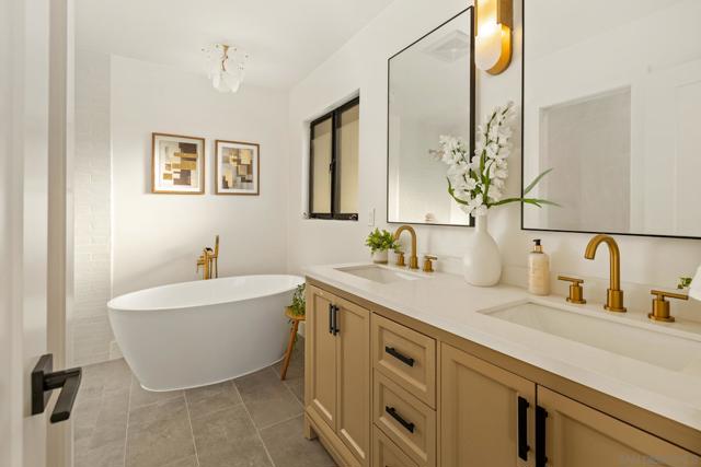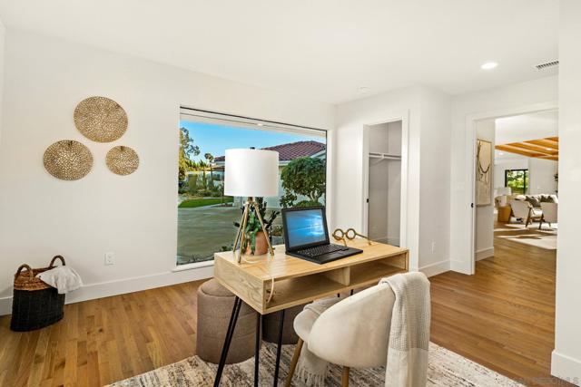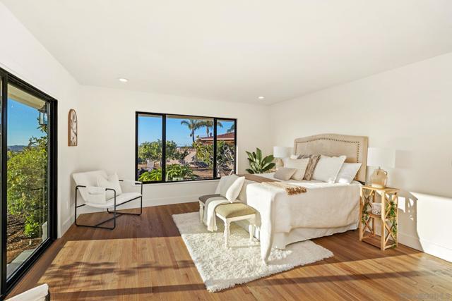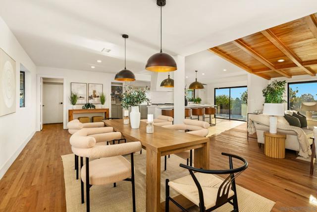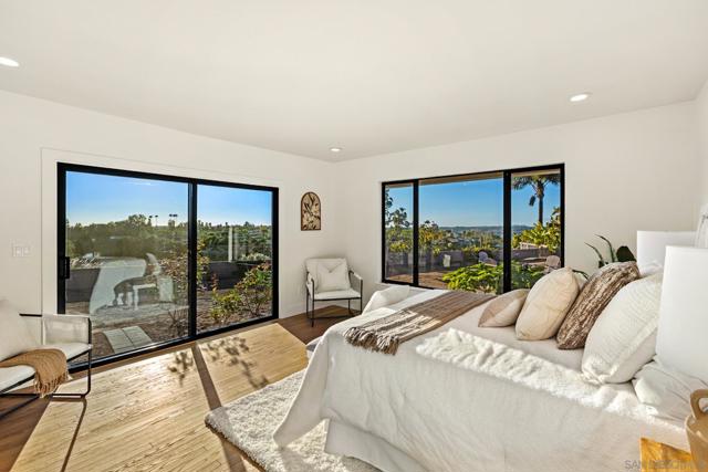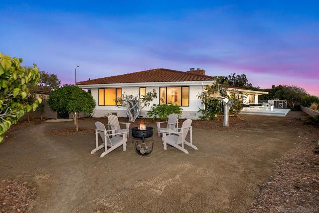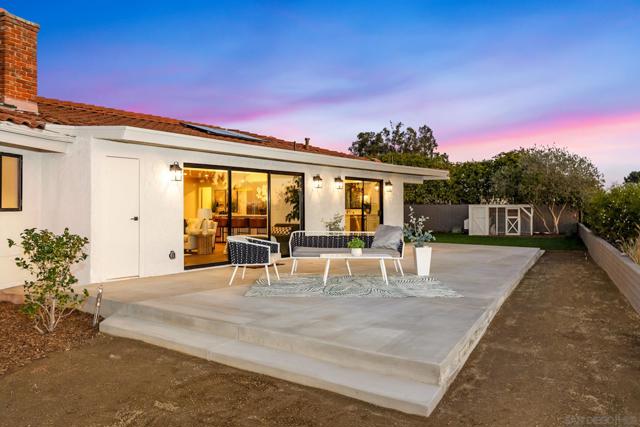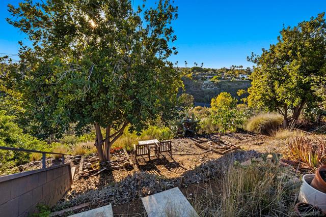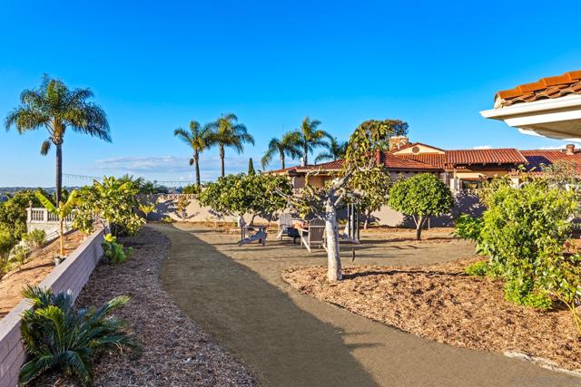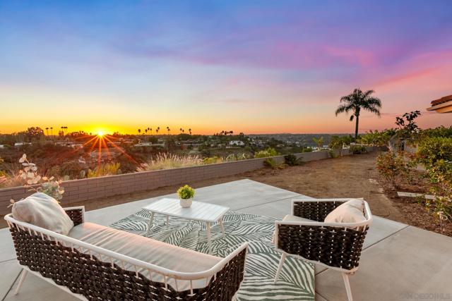 Perched on over an acre with sweeping canyon and sunset views, this highly upgraded single-story home offers a private retreat just minutes from SDSU, shopping, and everyday conveniences. Surrounded by greenery and open skies, the property delivers exceptional space, serenity, and comfort. Thoughtfully remodeled with care and craftsmanship (not a flip), the home features four permitted bedrooms, four full bathrooms, a bright open layout, new HVAC, and an original tongue-and-groove vaulted ceiling. Interior highlights include solid hardwood floors, high-end finishes, new vanities, new tile, and quartz and marble surfaces throughout. The chef’s kitchen features a Sub-Zero refrigerator, Thor dishwasher, and Forno 8-burner gas range with double ovens, an 11-foot island, new cabinetry, generous counter space, and a large walk-in pantry. A separate laundry room adds convenience. Master-suite offers canyon and sunset views through a large sliding door opening to a rose garden, plus a cedar-lined walk-in closet and remodeled bath with soaking tub. The main living area includes custom cabinetry and oversized glass sliders opening to an expansive patio for seamless indoor-outdoor living.The grounds include a large grassy area, in-ground garden beds, and a custom-built chicken coop. The property has over 40 different fruit trees and berry plants including fig, mulberry, persimmon, avocado, macadamia, pineapple guava, banana, papaya, lemon, nectarine, peach, apricot, pear, apple, pomegranate, and berries. Additional features, U-shaped driveway, ample storage and beautiful grounds.