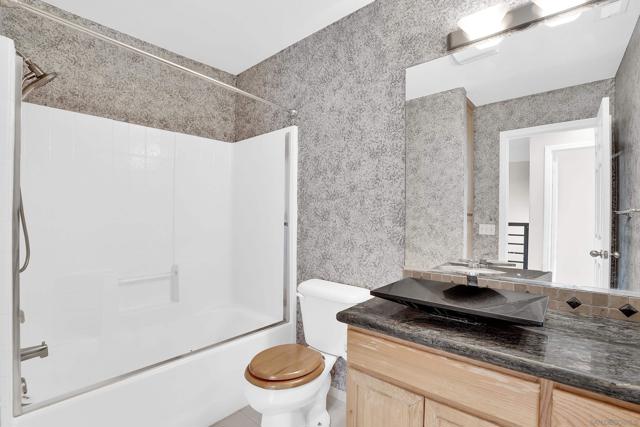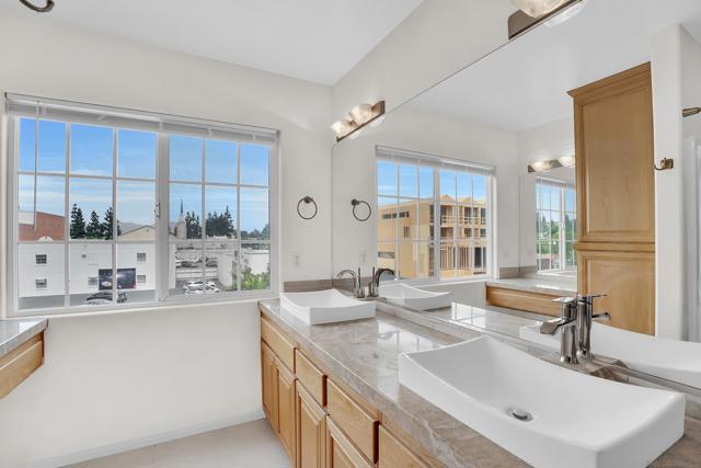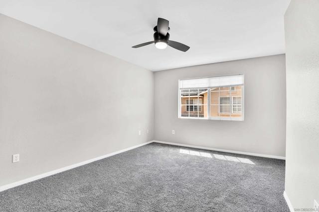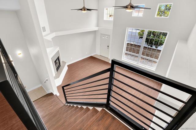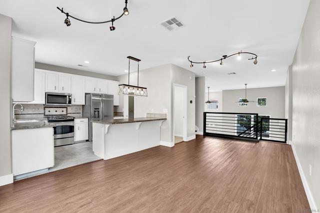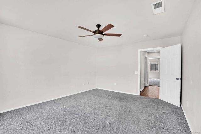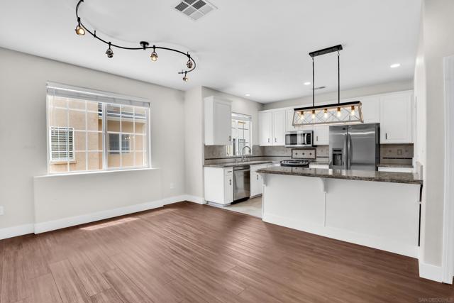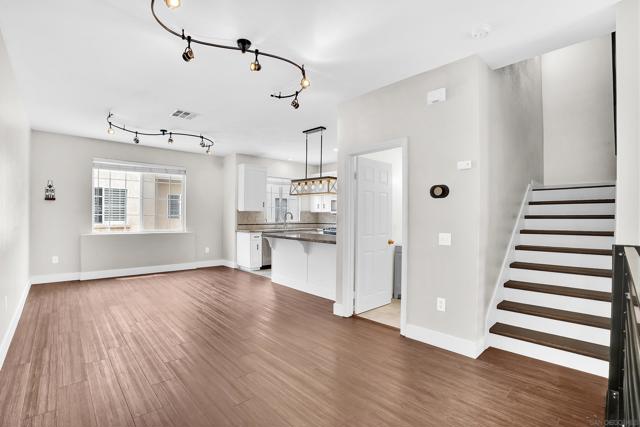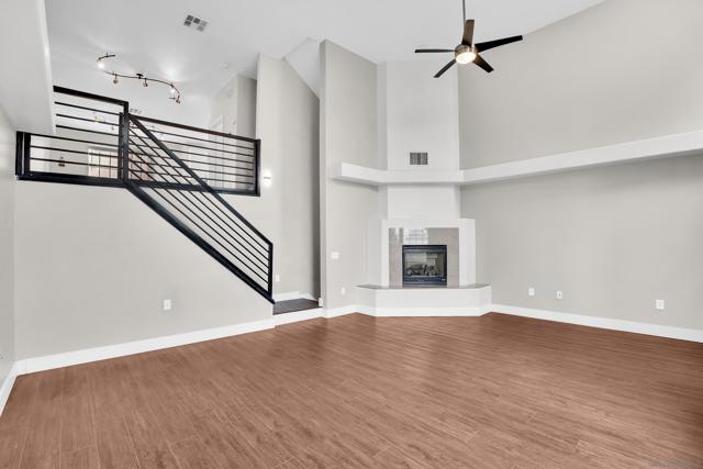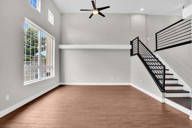 Security deposit special: ONLY $1200 for tenants moved in by 12/1/25. Want cheaper electric? This property has solar panels to bring down your costs dramatically! Go ahead and run that new and powerful air conditioner! Do not miss this Incredibly spacious townhome with towering living room windows and ceilings, 2 car garage, Laundry in unit, Espresso plank flooring, modern rail stairwells, and 3 spacious bedrooms with 2.5 baths! This home has a newer air conditioning system, solar panels to help keep yo! ur electric bills low, and cieling fans too! A nice patio in front opens up to the downtown El Cajon neighborhood right across the street where cafe's, restaurants, shopping and more are right at your fingertips!