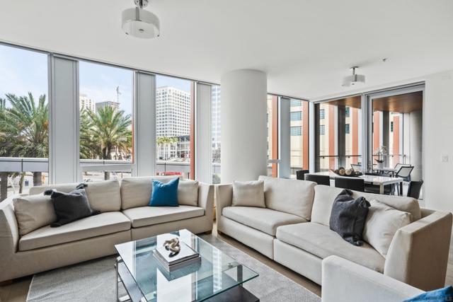 Available for immediate move-in. Beautiful 2 bedroom/2 bathroom residence available for rent in San Diego's exclusive luxury high rise, Pacific Gate by Bosa. Residence 305 comes beautifully furnished with a tandem 2-car parking spot, a spacious terrace, and generous living spaces. The kitchen is fitted with top-of-the-line appliances by Miele, Wolf, and Sub-Zero, motorized upper cabinetry, and sleek Caesarstone counters. The primary suite boasts ample space and an ensuite bathroom adorned with GRAFF fixtures, an LED lit anti-fog mirror with built-in TV, soaking tub, and a separate glass-enclosed shower. This residence is not only a masterpiece in design but also in technology, equipped with smart home features that elevate your living experience. Control lighting, climate, and motorized window shades at the touch of a button, seamlessly integrating modern convenience into your daily life. Step outside onto your private balcony where you can savor morning coffee or unwind an sunset. Resort-style amenities include a chef concierge, pool terrace with cabanas, outdoor cooking area, cozy fire pit, residents lounge with catering kitchen, screening room, business and conference room, and to top it all off, exclusive access to a residents-only yacht share. Onsite celebrity chef restaurant at your doorstep, plus much more! The first all-glass Super Prime residential tower in San Diego offers an unprecedented waterfront lifestyle with sky-high amenities and picture-postcard views. Directly overlooking the waterfront, the 41-story tower contains an exclusive offering of homes designed by Hirsch Bedner Associates. Renowned New York-based architectural firm Kohn Pedersen Fox (KPF) created a landmark that re-imaged the San Diego skyline. The custom-engineered glass walls dynamically reflect the hues of the sky and the Pacific Ocean. Pacific Gate has evolved the San Diego skyline and represents the future of the city. The building is comprised of two-nested curved glass towers that rise as a single column from a three-story ground floor retail podium on the north and west sides of the tower. Because of the building’s curves and exterior glass, Pacific Gate offers a striking viewing experience from every vantage point. Residents arrive home to a beautifully landscaped motor court with a private luxury car fleet, which leads to a double-height lobby with a 24-hour concierge and porter services. Two levels of amenities boast a residents lounge ideal for events and everyday use, the fitness center contains an extensive range of state-of-the-art equipment. Adjacent to the fitness center is the steam and sauna retreats that open up to the fourth-floor pool terrace fitted with poolside cabanas and glass surround.