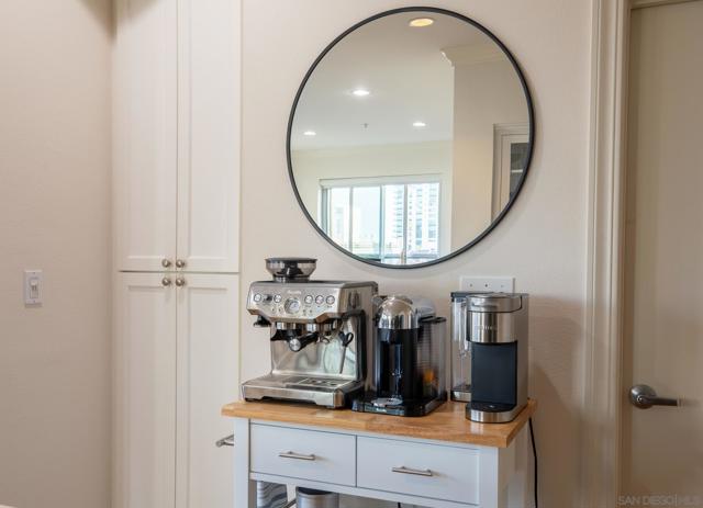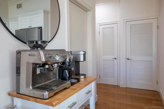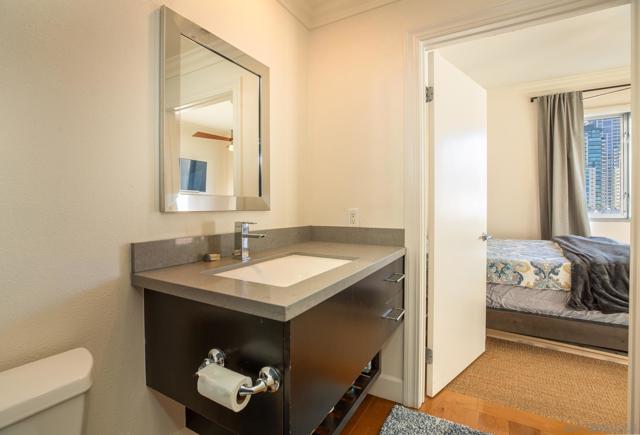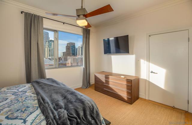 This rare, fully furnished corner unit, filled with natural light, is exquisitely upgraded and remodeled. It’s a spacious 2 bedroom, 2 bath condo in the heart of the Gaslamp. This unit has it all! Sweeping city views, wood flooring throughout, quartz counters, stainless steel appliances, in-unit washer and dryer, 2 secured parking spaces, and much more. The optimal location is within walking distance to endless dining options, entertainment, and nightlife. Building amenities include a pool, spa, courtyard, BBQ, community room, and fitness center. Perfect for those seeking to immerse themselves in urban living.