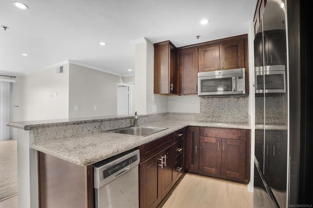 Views Views Views! This gorgeous condo has been tastefully upgraded and provides comfort and serenity in more ways than one! A stunning panoramic golf course view to the south with beautiful natural light enhances your living environment while you call this peaceful 2/2 single level condo your new home. A combination of LVP flooring and lush carpeting make it warm and inviting while upgraded appliances, new in-unit washer and dryer, and brand new air conditioning make it extra efficient and enjoyable. Newer windows and patio slider provide extra insulation, and an outdoor patio lets you take in the beautiful San Diego weather. The El Dorado Greens complex is a true gem offering a beautiful pool, spa, tennis / pickeball courts, and reserved underground parking. Water, Trash, Spectrum cable and internet are also included at no extra charge!
