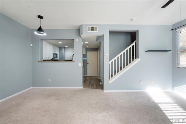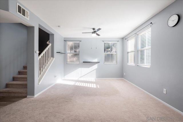 Experience comfortable and contemporary living at 841 Compass Way in the desirable Ocean View Hills/Otay Mesa community of San Diego. This well-maintained 3-bedroom, 2.5-bath home offers a bright open-concept layout with large windows, natural light, and a spacious living and dining area perfect for relaxing or entertaining. The modern kitchen features granite countertops, stainless steel appliances, generous cabinet storage, and a convenient breakfast bar. Upstairs, the primary suite includes a walk-in closet and private en-suite bath, while two additional bedrooms provide ample space for family, guests, or a home office. Additional highlights include central heating and air conditioning, an upstairs laundry room with washer and dryer included, and an attached 2-car garage with extra storage. The backyard offers a peaceful, low-maintenance outdoor space ideal for gatherings or quiet evenings. Located near major freeways including the 905, 805, and 125, this home provides quick access to shopping, dining, schools, parks, military facilities, and major employers. With its convenient location, modern features, and inviting atmosphere, this property is the perfect place to call home.