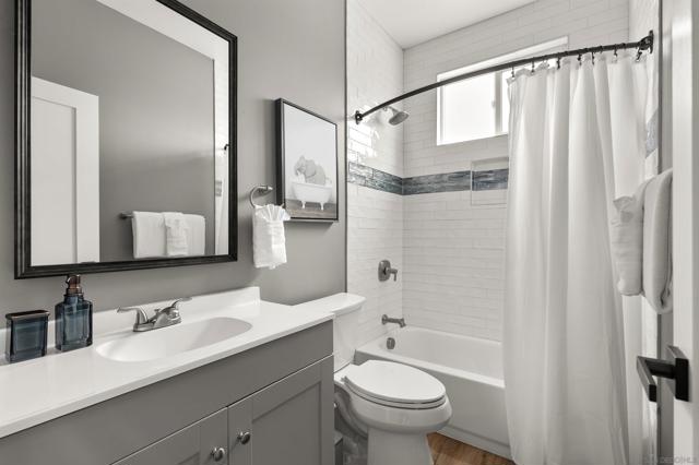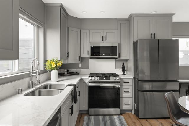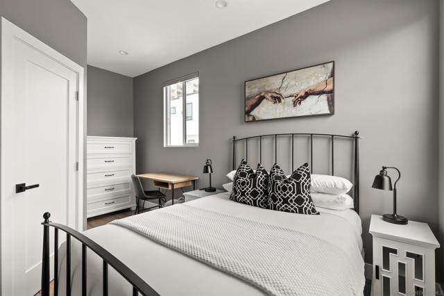 FURNISHED MIDTERM & LONG-TERM RENTAL — Brand New Coastal Contemporary in Pacific Beach Newly built 2BR / 1.5BA coastal contemporary home just four blocks from Law Street Beach in the heart of North Pacific Beach. Walkable to cafés, shopping, and vibrant dining, this stylish retreat offers fresh design and relaxed beachside living. Gated front yard features a pergola, cozy outdoor seating, market lights, and BBQ for alfresco evenings. Inside, the spacious living room includes a large sectional, flatscreen TV, and dedicated workspace. Open floor plan flows to the dining area for four and a modern kitchen with stainless steel appliances. Convenient half bath on the main level. Upstairs, both bedrooms offer queen beds; one includes a desk, the other a flatscreen TV and ceiling fan. Updated full bath with shower/tub combo completes the layout. A/C provided for year-round comfort. North Pacific Beach offers calm, family-friendly beaches, scenic cliffside viewpoints, surf schools, the boardwalk, and easy access to Tourmaline Surf Park and Crystal Pier. Sleeping Setup (max 4): BR1 Queen • BR2 Queen 1 Full Bath + 1 Half Bath Available fully furnished only. Rates reflect short-term rental pricing and vary by season and length of stay. Published amounts are estimates; final pricing, fees, and availability are subject to change until a signed agreement. Please inquire for an exact quote.