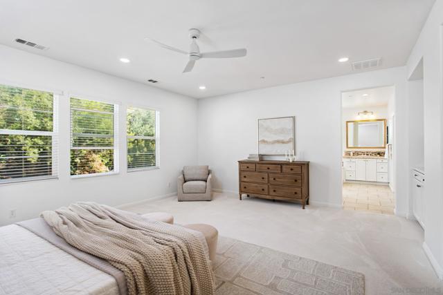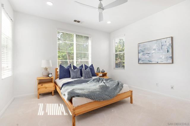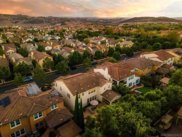 Step into a home where style meets comfort, with every detail designed for modern living. This Mediterranean-inspired farmhouse welcomes you with an expansive 3-car tandem garage, an airy open-concept living room, and a chef’s kitchen featuring brand-new quartz countertops and stainless steel appliances. Updated flooring runs throughout the home, with luxury vinyl plank on the first floor and plush carpeting upstairs for both durability and comfort. The convenience of OWNED SOLAR keeps energy costs low and eco-friendly. Just off the kitchen, you’ll discover the signature DEL SUR ROOM—a covered outdoor patio that blends seamlessly with the interior for year-round indoor–outdoor living. Whether you’re grilling, entertaining, or relaxing by the fireplace, this space makes every season feel like San Diego perfection. The first floor also includes a highly sought-after bedroom and full bath, perfect for guests or multi-generational living. Upstairs, the luxurious primary suite feels like a spa retreat with its oversized soaking tub, dual vanities, and spacious layout. You have two additional extra large bedrooms and a Spacious Loft that can be used as a 5th Bedroom. Outdoors, the private backyard sits on a larger lot, creating a true retreat. Complete with a fireplace, mounted TV, elegant hardscape, lush turf, and garden-ready space for herbs or veggies, it’s both an entertainer’s paradise and a family haven all in one. Location is everything, and this home delivers. It’s within walking distance to Del Sur Elementary and just minutes from Del Sur Town Center and 4S Commons for shopping, dining, and weekend fun. Beyond your front door, the perks continue with access to top-rated schools and an amenity-rich community featuring biking & hiking trails, multiple pools, parks, a clubhouse, recreation center, and spa. This home isn’t just a place to live—it’s a lifestyle.