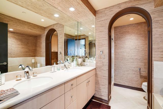 This beautifully furnished 2,510 sq. ft. condo, known as The Bubble, offers an extraordinary living experience in one of San Diego's most iconic luxury buildings. The expansive floor plan includes two elegant living rooms, a bar, and abundant entertainment space, all framed by floor-to-ceiling windows that provide stunning 300-degree views of San Diego Bay, Coronado, Point Loma, and the Downtown skyline. The master suite is a true retreat, featuring maple Brazilian hardwood floors, etched glass French doors, marble countertops, and a steam shower. The suite is equipped with an integrated sound system, four televisions, and two AC units, ensuring ultimate comfort. Two spacious balconies provide breathtaking panoramic views of sunrises and sunsets, with exposures to the East, South, and West. Residents enjoy access to one of the finest community decks in San Diego, located on Level 6. This tropical oasis includes a 90-foot lap pool, jacuzzi, fire pits, BBQ areas, and a newly redecorated clubhouse/cabana. Additional amenities include a well-equipped fitness center and sauna. The unit also comes with two private parking spaces conveniently located on Level 4. Located in the highly sought-after Gaslamp Marina District, this property offers unparalleled convenience, with easy access to Seaport Village, the Midway, Embarcadero, Petco Park, and Little Italy. The building features a recently remodeled lobby with elegant marble and wood finishes, along with 24-hour concierge and security services, embodying the epitome of luxury living in San Diego.