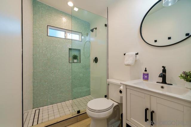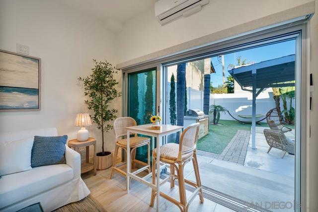 PRISTINE PB LOCATION! Fully Furnished All Inclusive Remodeled Detached Casita – Walk to Bay and Ocean!! Welcome home to your luxury beach retreat! This stunning, detached studio Casita offers unparalleled privacy and sophisticated style in one of San Diego's most sought-after neighborhoods. Forget the typical apartment life—this unit is a stand-alone gem where you'll never share a wall. The Interior: Step inside to discover a high-end remodel. The space features gorgeous white oak wide-plank LVP flooring throughout and is bathed in natural light, thanks to the panoramic sliding glass door which leads directly to the shared yard. The studio accommodates a Queen-sized bed area comfortably. The sleek kitchen is a showstopper, boasting Quartzite countertops, white shaker cabinetry with modern black pulls, and all new stainless steel appliances, including a coveted deep farmhouse sink, full stove, and cooktop. Enjoy year-round comfort with the dedicated mini-split AC unit...CONT.. The full bathroom features a chic walk-in shower. The Location & Lifestyle: Located directly on Pacific Beach Drive, your daily routine involves walks along Mission Bay (just a 3-minute walk) or surfing sessions on the Oceanfront (a quick 10-minute walk). The Casita shares a beautifully landscaped backyard, offering a perfect communal escape complete with dining, lounge seating, and a BBQ area—ideal for hosting friends or relaxing after a day at the beach.