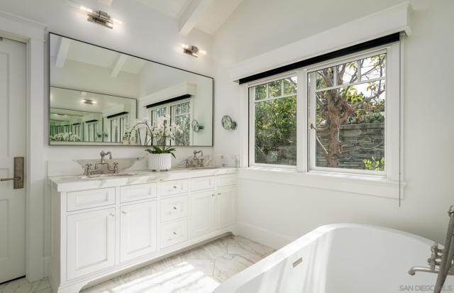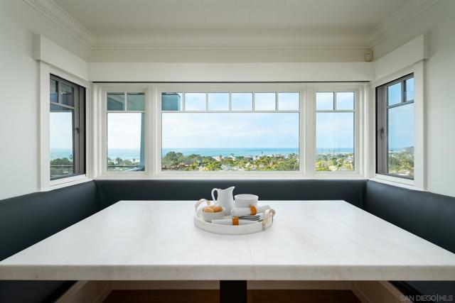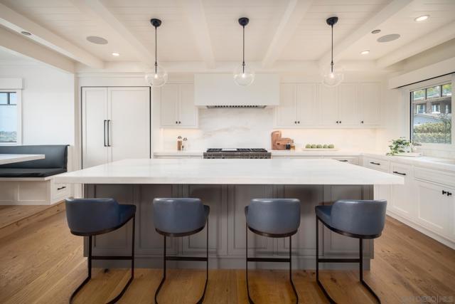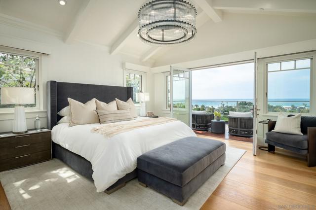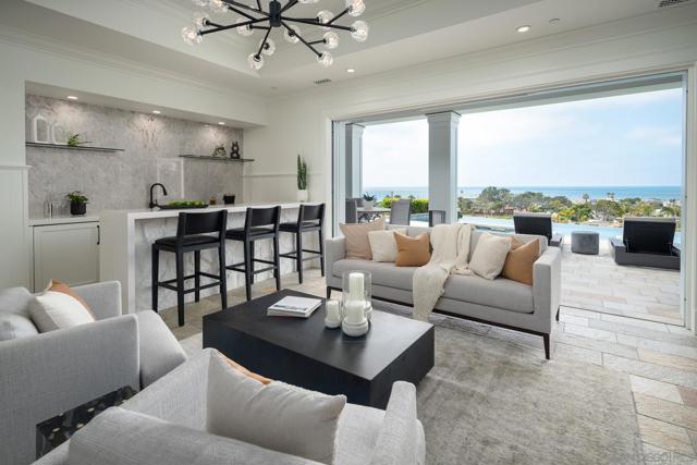 Coastal Craftsman with 180-degree ocean views lives up to its Seaview address. The 5,459SF 4+BR/5.5BA house reflects tradition; wood shingles, vaulted ceilings, Dutch door; while creating a contemporary vocabulary of coastal living. A fusion of timeless elegance & unmatched quality, it was designed by Bokal Sneed Architects. Ocean views unfurl dramatically throughout the house and the floor plan maximizes outdoor living. It's a quick jaunt to the village & iconic beaches. Property is also listed for sale at $14,800,000. Seller will consider offers including, lease option and seller financing. This house is your invitation. To bask in the leafy privacy of Olde Del Mar. To savor 180-degree dramatic ocean views. To watch magical sunsets unfold nightly from your living room. Cocktails are served here with a green flash. Upon entry, this Coastal Crafstman exudes a tranquility that can only be achieved through superior design. With its insulated qualities, natural palette and ocean panorama, there is a sense of calm and containment that seems to mute the world outside. Tucked in the hills, this location is rarified but connected. It boasts superior walkability to iconic Del Mar beaches, the Del Mar Thoroughbred Club and Del Mar Village, now buzzier than ever with shops and new restaurants. A portfolio of high-quality finishes creates functional legacy and relevant design. There’s wide-plank white oak floors and the bright, roomy kitchen features Calcutta marble, a built-in banquette and farmhouse sink. The sumptuous master bath features Calcutta marble floors and a free-standing soaking tub. On the second level, there’s a quartz bar, Idaho Quartzite floors and a seating area flanked by a glamorous glass-encased wine display. These are front-row seats to the saltwater infinity-edge pool and spa. Also on the second floor: two en-suite bedrooms. The third level, meanwhile, features an expansive game and media room, a vaulted gym with a water-filtration system, a laundry room, and a fourth en-suite bedroom and an office.
