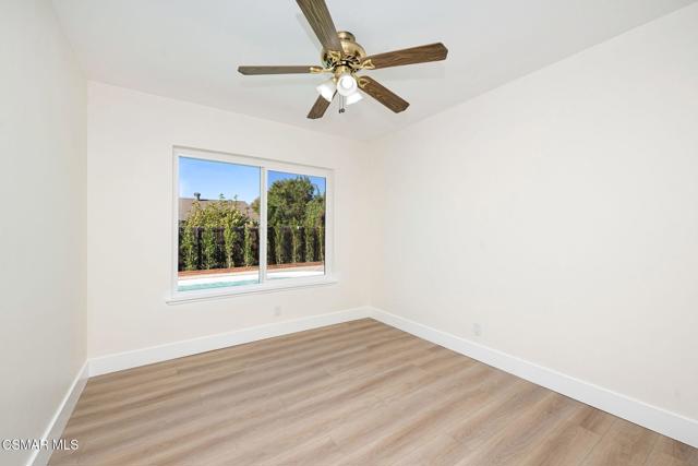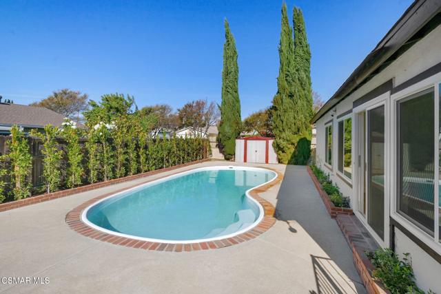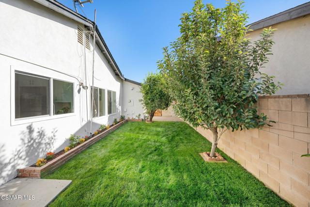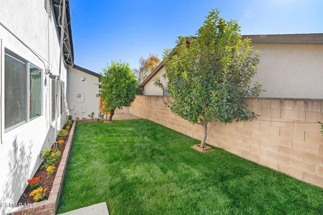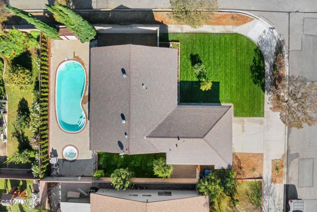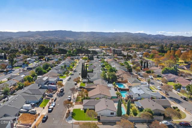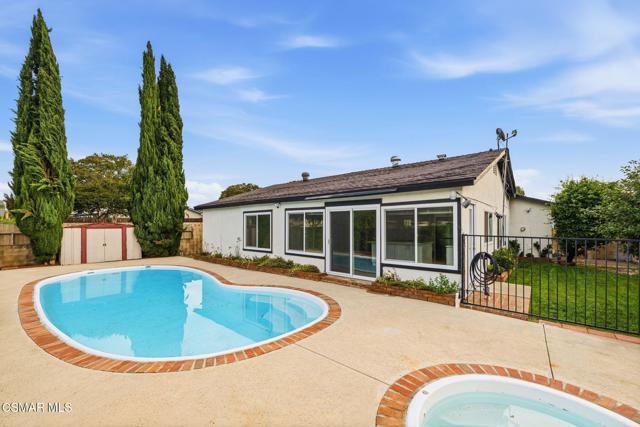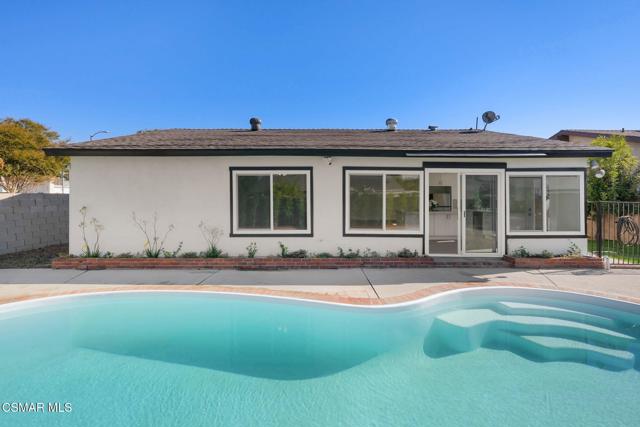Welcome to this beautifully updated single-story pool home, perfectly positioned on a spacious, lush corner lot with mature fruit trees including avocados, lemons, limes, and apples. Nestled in a warm, inviting neighborhood just minutes from the 118 freeway and close to parks, restaurants, and shopping. Step inside to an open, airy living room that flows effortlessly into a fully upgraded kitchen.Highlights include a brand-new custom island with abundant storage and barstool seating, new quartz countertops, all-new custom cabinetry, stainless steel appliances, LED recessed lighting and all new double-pane windows. Luxury Vinyl Plank Flooring throughout, creating a modern and cohesive aesthetic. Both bathrooms have been completely remodeled with sleek, contemporary finishes. Outside, enjoy a sparkling pool and jacuzzi ideal for sunny days, gatherings, or relaxing evenings. A separate gated grassy side yard provides even more room to unwind, kids to play, or garden among the fruit trees. Security cameras included. Move-in ready and thoughtfully upgraded, this home truly offers it all.