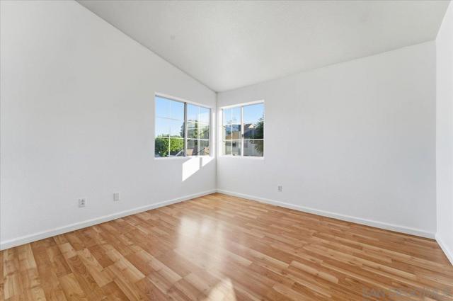 Tucked in the heart of El Cajon, this ideally located, quiet townhome offers the comfort and privacy of a single-family residence with its own private fenced backyard space. With only one shared wall, the light-filled interior welcomes you with a spacious living room anchored by a warm, inviting fireplace. The open-concept layout flows effortlessly into the dining area and well-designed kitchen, which maximizes functionality with abundant cabinetry and updated countertops. Upstairs, the generous primary suite impresses with soaring cathedral ceilings, abundant natural light, and a beautifully refreshed ensuite bath featuring a new vanity and modern flooring. Thoughtful updates include new plush carpeting, new central A/C, and an attached one-car garage with direct access to laundry hook-ups, plus an additional parking space. Residents of Mollison Park enjoy a sparkling pool, relaxing hot tub, and tranquil grassy areas perfect for picnics or outdoor play. With low HOA dues and exceptional walkability to schools, parks, local shops, and dining, this home combines comfort, convenience, and an enjoyable lifestyle.