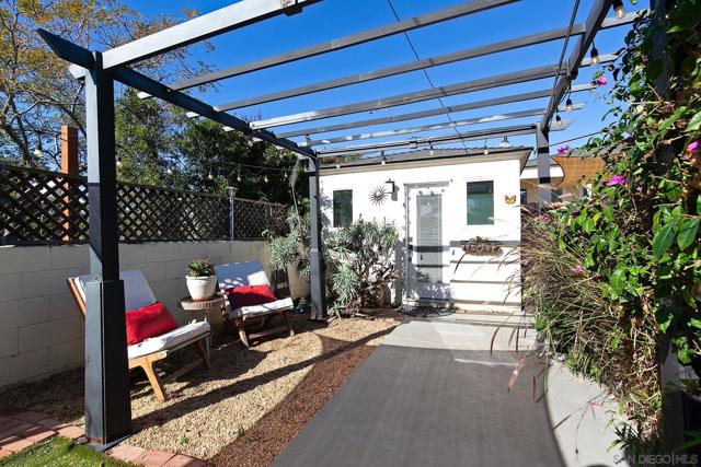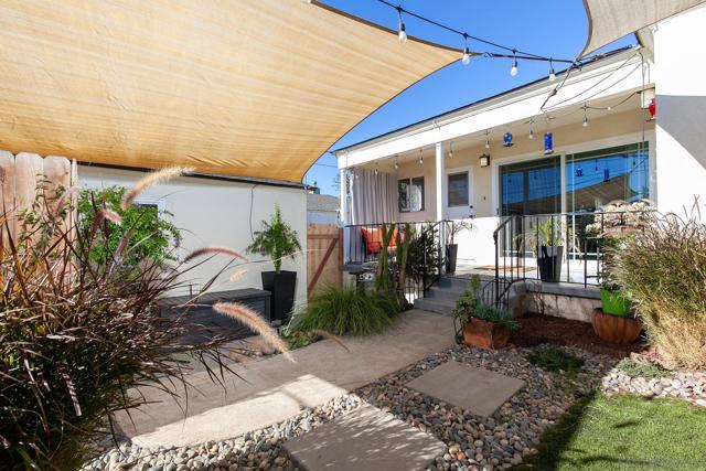 Seller will entertain offers between $849,000 - $889,000. Stunning and well maintained large 2bed/2full bath 1220 sq ft. vintage home in El Cerrito. Light and bright interior w/gleaming original resurfaced hardwood floors throughout. Central forced air heat, whole house fan, faux fireplace, all newer interior doors, sliding door., kitchen door to patio and front door. Kitchen has separate breakfast nook area. Beautifully landscaped extra large backyard w/detached garage converted into a "tiny house." Lot zoned R2 w/lots of buildable potential. Backyards fenced off for privacy between tiny house and main house. Single car garage converted into a 224 sq ft studio (tiny house) with it's own private entrance, beautiful and tranquil private enclosed backyard, 2 car parking off alley. Unit has a kitchenette, refrigerator, dishwasher, induction hotplate for stove, windows, lots of cabinet storage spaces, high-end flooring and a European washer/dryer. Backyards fenced off for privacy between tiny house and main house. El Cerrito is an exceptional and friendly community and is central location to public transit system, close to SDSU, easy access to freeways, shopping, pubs, restaurants and coffee houses. A Must See!