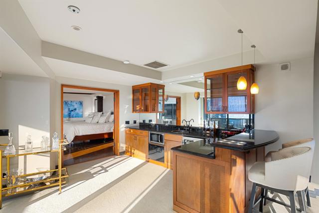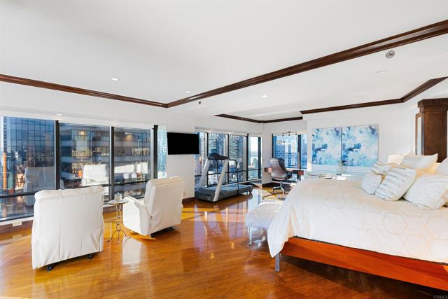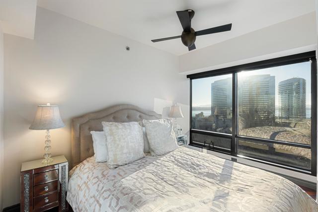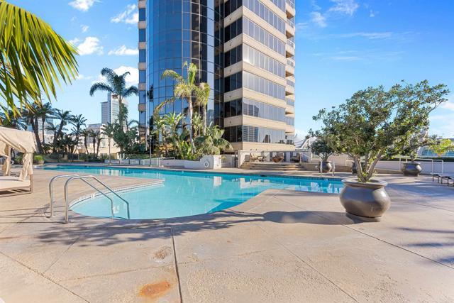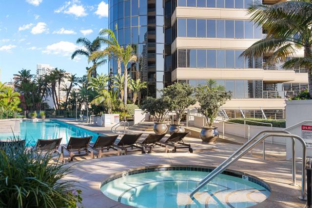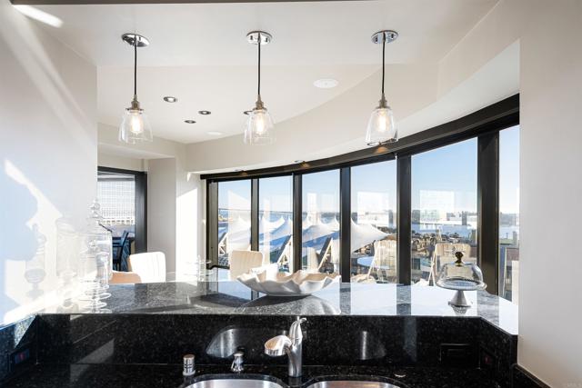 Perched high above the marina, this timeless Bubble Unit at the prestigious Harbor Club showcases sweeping views of San Diego Bay, the Coronado Bridge, and the downtown skyline. Ideally located near the Gaslamp Quarter, the residence offers convenient access to top dining, entertainment, and waterfront attractions. Two designated parking spaces provide added ease and accessibility. This spacious two-bedroom, three-bathroom home features two private entrances and two expansive balconies that extend the living space and frame the home’s panoramic vistas. A built-in bar near one of the balconies creates a seamless indoor-outdoor experience—ideal for morning coffee or evening relaxation. Elegant fixtures, recessed lighting, and abundant natural light enhance the sophisticated atmosphere throughout. The thoughtful floor plan includes two living areas, with one offering the flexibility to serve as an open-concept office. The generously sized kitchen and bathrooms offer ample counter space, complementing the home’s functionality and appeal for both everyday living and entertaining. Located on a floor with only one neighboring residence, this home provides exceptional privacy. The primary bedroom suite, accessed through grand French doors, further elevates the sense of comfort and tranquility. The unit’s timeless design elements add to its enduring charm. Residents of the Harbor Club enjoy resort-style amenities, including a pool, fitness center, and 24-hour security. A rare offering in one of San Diego’s most iconic buildings, this Bubble Unit presents an exceptional opportunity to experience what San Diego is truly about.