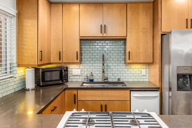Beautiful 2 bedroom condo on border between Hillcrest and Mission Hills. This home has been well appreciated and cared for. Recent improvements include the hall bath remodel, new countertops and backsplash in the kitchen, new fireplace surround and mantle and new HVAC system. Tile wood floors run throughout the home with vinyl plank the in remodeled bathrooms. Queen Murphy bed in bedroom can convey with the sale. Small 5 Unit condo complex provides ample storage and parking and very low HOA payments. Unit conveys with one private garage space and one parking space in the alley. Two security gates lead you into the private courtyard shared by residence. Building was recently repainted and new fencing installed. Ideal location on the very edge of both Hillcrest and Mission Hills with very walkable restaurants, shops and stores.